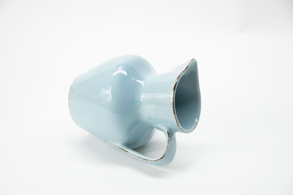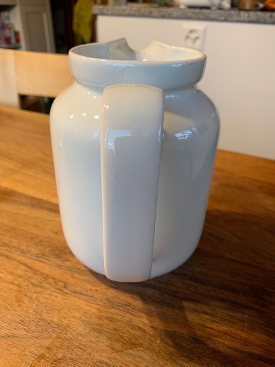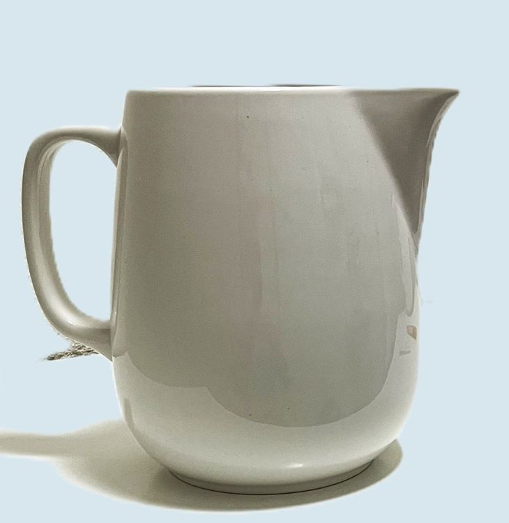 Klassischer Porzellan Wasserkrug 1200ml | Weiß Mit Blauem Rand | Handgefertigt