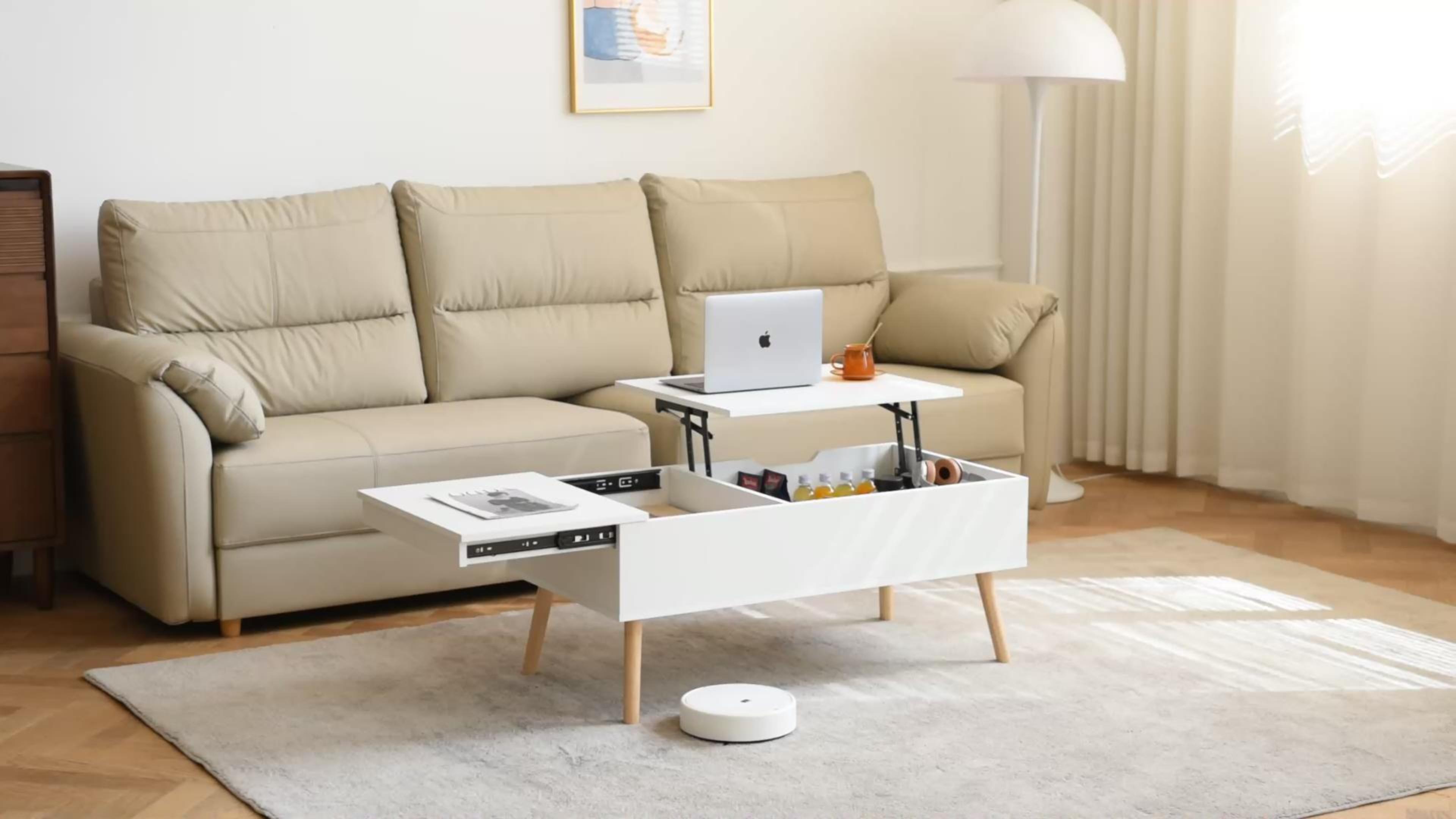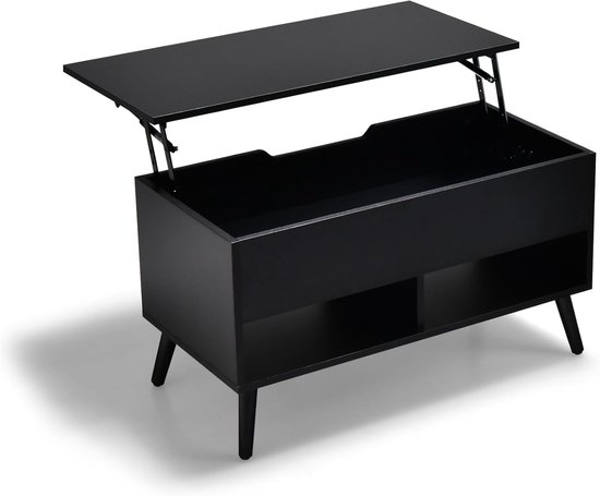 Flycity Couchtisch Höhenverstellbar 120cm - Klappbar Mit Stauraum In Schwarz-Eiche
