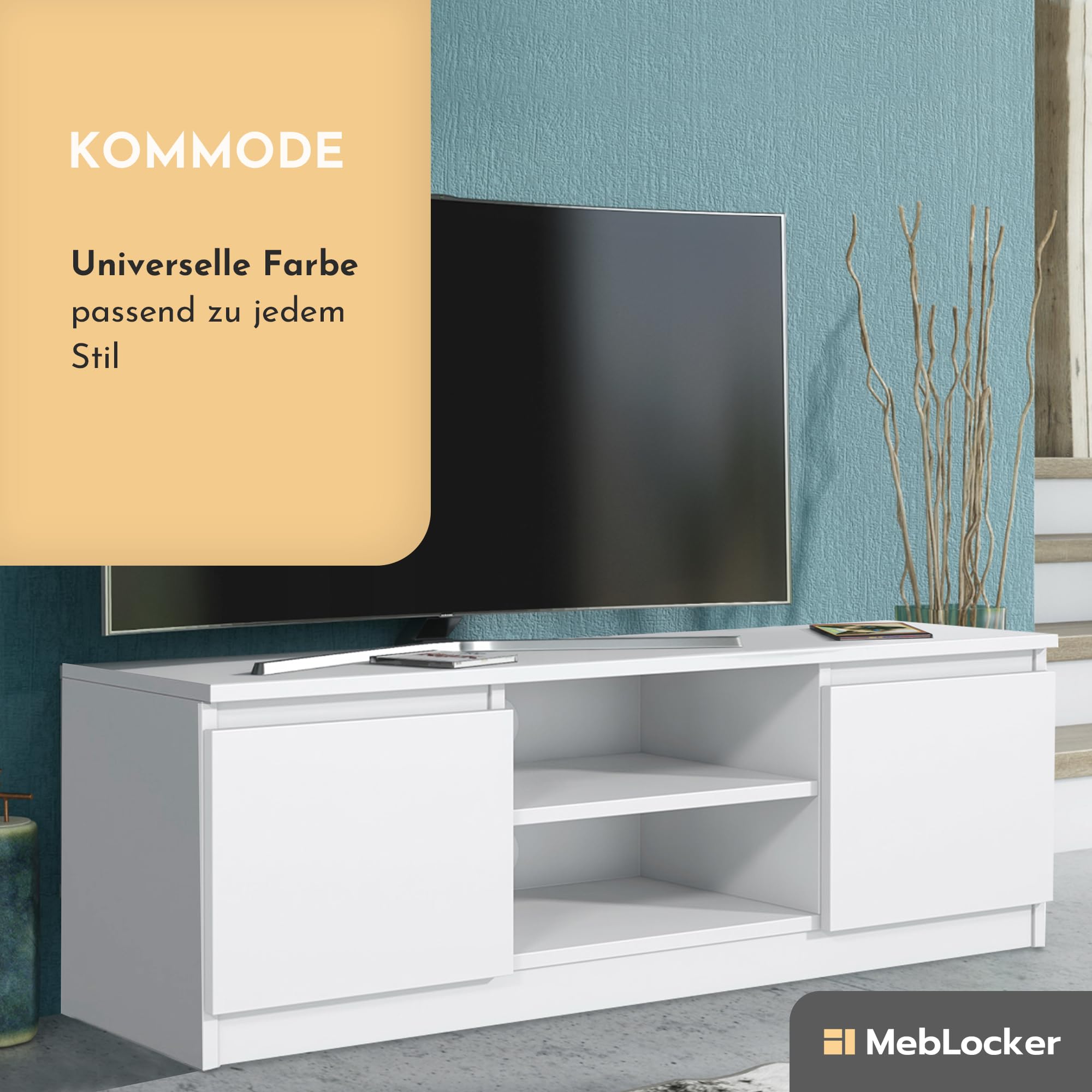 TV Lowboard Weiß 120cm - Schwebender Fernsehtisch Mit Stauraum Für Wohnzimmer