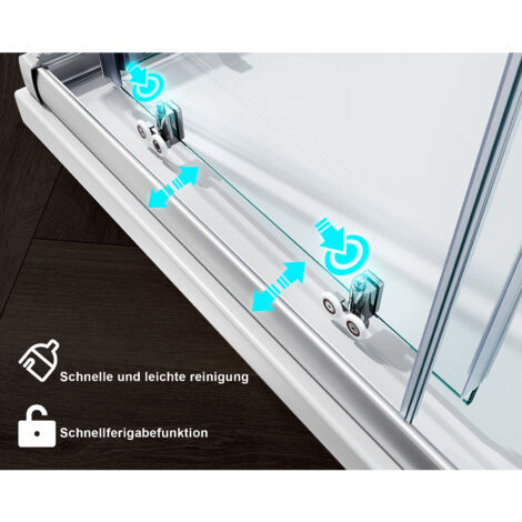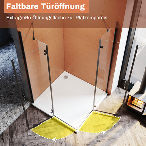 SONNI Duschkabine Scharniertür 120x100cm - Rahmenlose Eckeinstieg Duschabtrennung
