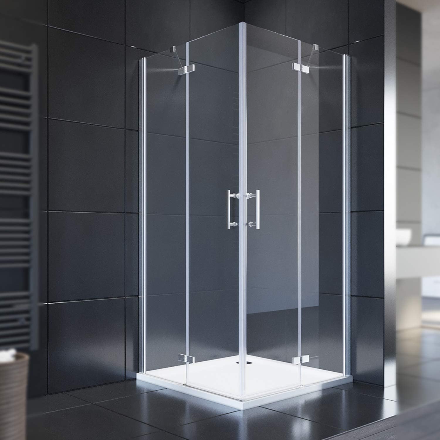 Moin Badezimmer-Planer! Diese SONNI Duschkabine mit Scharniertür ist genau das Richtige für alle, die eine elegante und praktische Duschlösung suchen. Mit 120x100 cm Grundfläche und 195 cm Höhe bietet sie genug Platz für komfortables Duschen.\n\nDas Besondere: Sie ist rahmenlos! Das bedeutet weniger Putzarbeit und ein modernes, cleanes Design. Die robusten Aluminiumprofile und verchromten Edelstahl-Haltestangen sorgen für maximale Stabilität und Langlebigkeit.\n\nDas 6 mm dicke ESG-Sicherheitsglas ist nicht nur sicher, sondern auch super pflegeleicht. Einmal abgezogen und schon sieht die Kabine wieder aus wie neu. Der Wandausgleich von bis zu 20 mm je Profil macht die Montage besonders einfach - auch bei unebenen Wänden.\n\nDie Dichtungsprofile garantieren einen optimalen Spritzwasserschutz. So bleibt dein Badezimmer trocken und du hast keine bösen Überraschungen. Die Kabine ist für Links- oder Rechtsanschlag geeignet und kann ebenerdig montiert werden.\n\nIm Lieferumfang sind Montageanleitung und komplettes Befestigungsset enthalten. Achtung: Ohne Duschtasse! Also perfekt, wenn du schon eine Duschwanne hast oder eine ebenerdige Lösung planst.\n\nVerstellbereich von 118-120 cm x 98-100 cm gibt dir noch etwas Spielraum bei der Installation. Einfach aufbauen und dich an deiner neuen Premium-Dusche erfreuen!