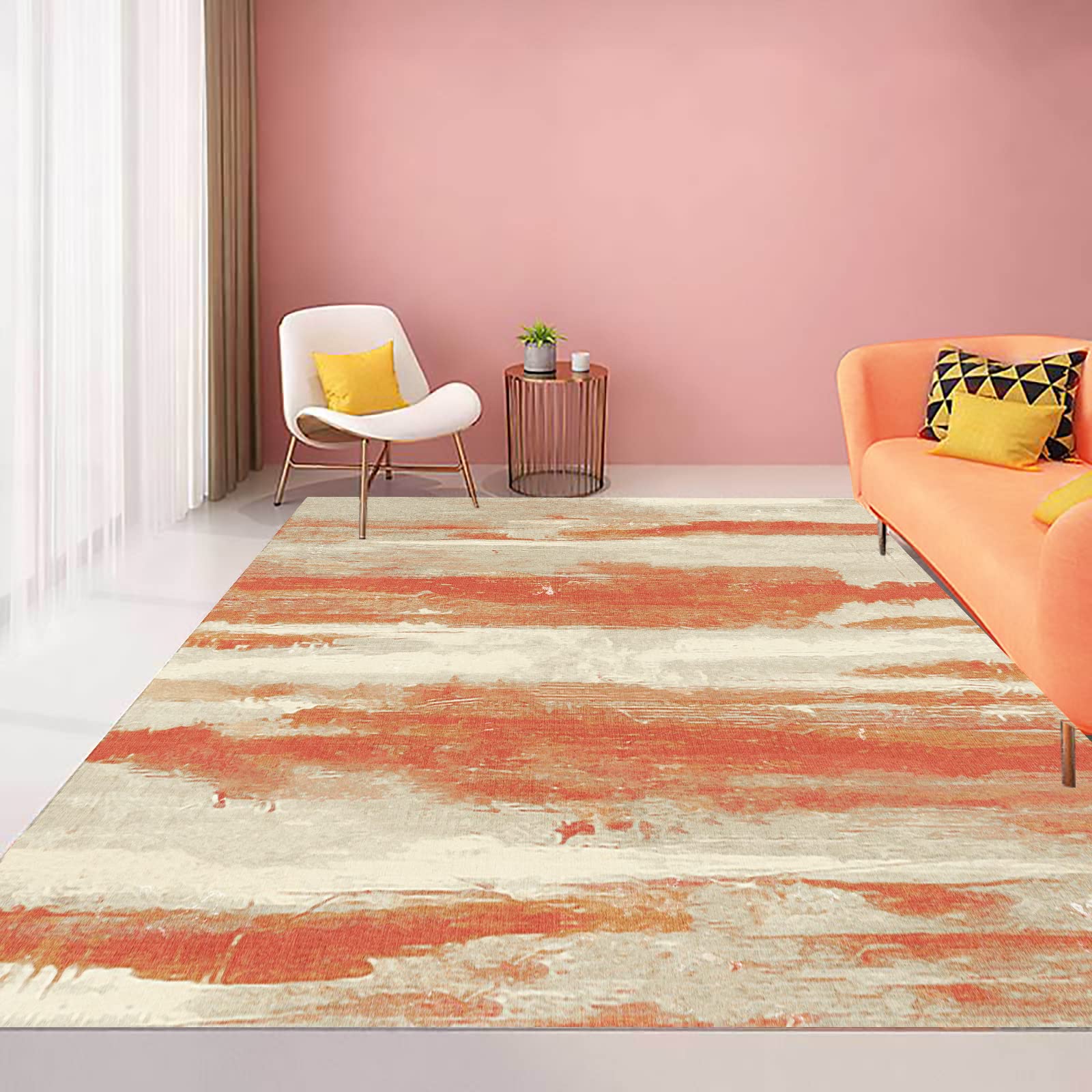 Wow, dieser Teppich macht dein Wohnzimmer gleich viel gemütlicher! In modernem Gelb-Braun Streifen-Design passt er super zu jedem Einrichtungsstil. Mit 120x160cm die perfekte Größe für unter den Couchtisch oder vor's Sofa. Der Kurzflor ist super weich und angenehm zu begehen, aber dennoch robust. Rutschfeste TPR-Unterseite sorgt für Sicherheit - auch mit Kindern und Haustieren. Einfach in der Maschine waschbar (kalt!) und trocknen lassen. Kann anfangs Falten haben, die aber nach paar Tagen von alleine verschwinden. Einfach ausrollen und sich über das neue Wohlfühl-Ambiente freuen!