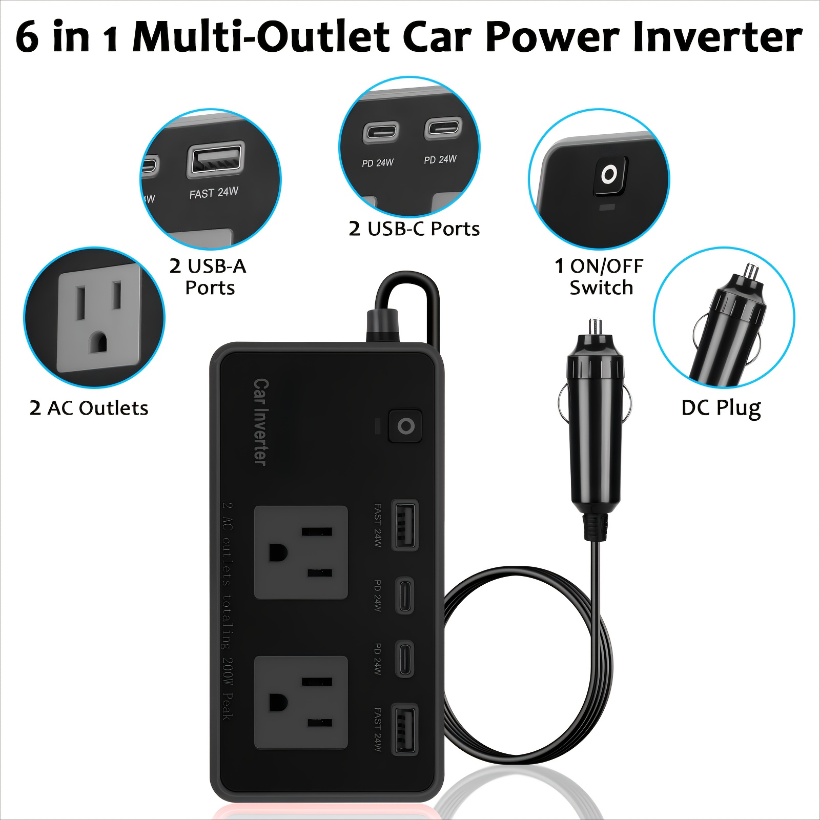 200W Auto Wechselrichter 12V Auf 220V - Tragbarer Stromwandler Mit USB Ports