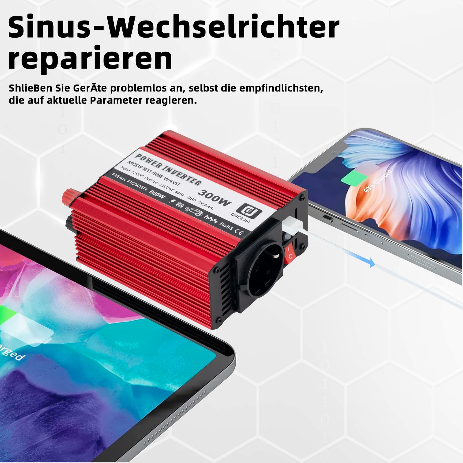 CNCEJIA 1000W Wechselrichter - Reiner Sinus 12V Auf 230V Mit USB & Display