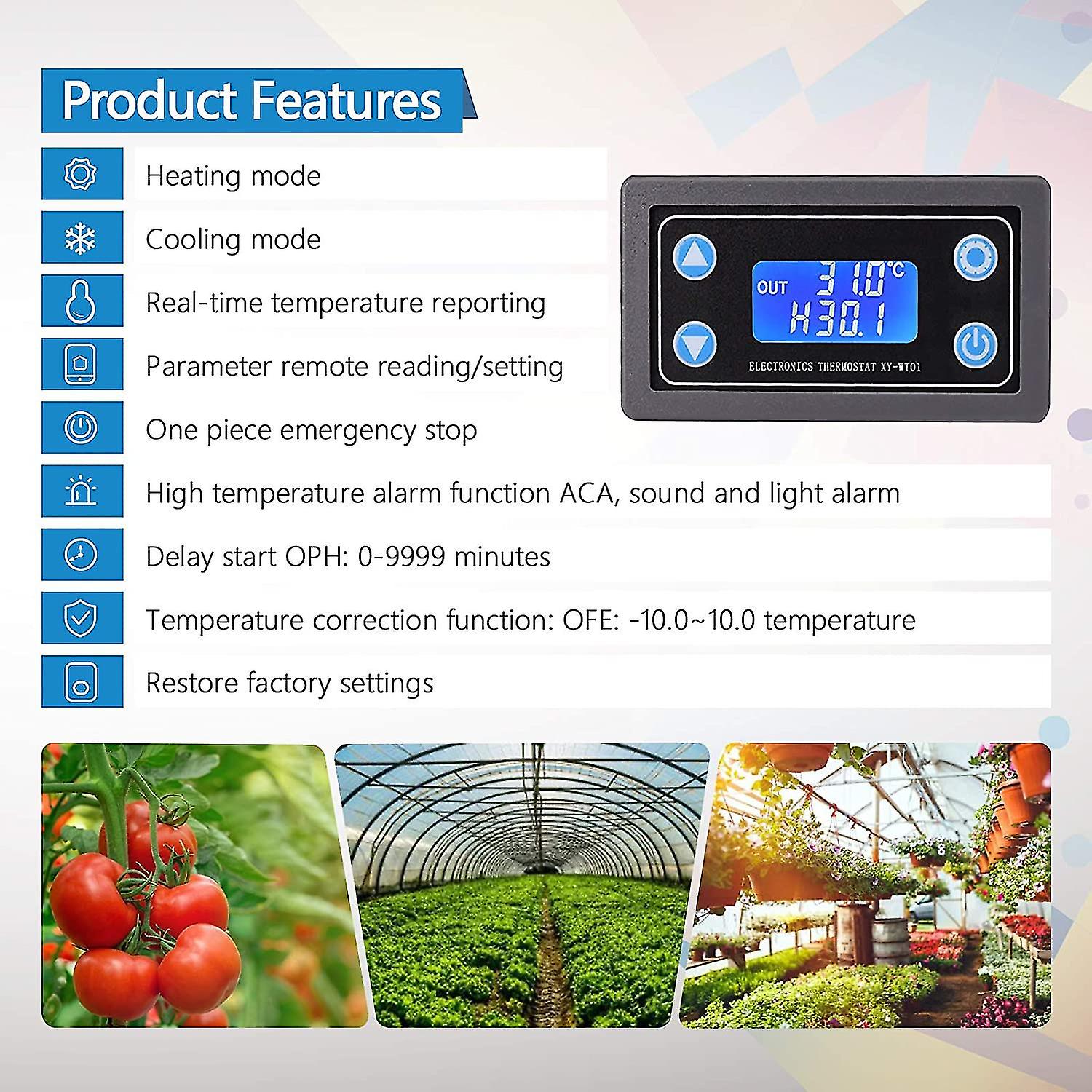 Perfekte Temperaturkontrolle für deine Projekte! Dieser digitale Temperaturregler von ARCELI ist ein echter Allrounder - ob für Kühlbox, Heizung oder Gewächshaus. Mit 12V DC Betriebsspannung super für Auto, Wohnmobil oder Solaranlagen.\\n\\nDas coole Feature: Zwei separate Relais für Kühlung UND Heizung, beide mit 10A/250V Kapazität. Du kannst zwischen Fahrenheit und Celsius umschalten und den Sensor mit seinen 2 Metern Länge genau da platzieren, wo du ihn brauchst.\\n\\n• Betriebsspannung: 12V DC\\n• Temperaturbereich: -50°F bis 99°F / -50°C bis 99°C\\n• 2 Relais (Kühlung & Heizung)\\n• Sensorlänge: 2 Meter\\n• Genauigkeit: ±1°F/±1°C\\n• Alarmfunktion bei Störungen\\n\\nWichtig: Nur für 12V Geräte! Nicht an 110V anschließen. Einbau ist mit den Maßen 75x34,5x85mm kein Problem - passt in die meisten Anlagen.