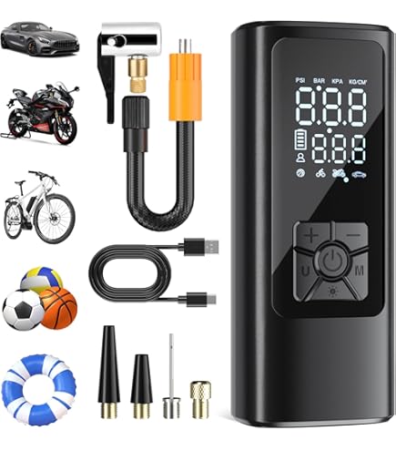 Hey, mit diesem Vinabo Luftkompressor machst du dich unabhängig von Tankstellen! Der praktische 12V Kompressor passt in jeden Kofferraum und pumpt dir deine Reifen blitzschnell auf - in unter 5 Minuten von 0 auf 35 PSI. Das coole Feature: Du kannst den gewünschten Reifendruck vorwählen und die Pumpe stoppt automatisch, sobald er erreicht ist. Kein Über- oder Unterdruck mehr! Mit dem klaren Digitaldisplay behältst du immer den Überblick, und die LED-Beleuchtung hilft auch bei Dunkelheit. Mit 3 verschiedenen Düsen und 3m Kabel ist er vielseitig einsetzbar - nicht nur für Auto-, SUV- und Motorradreifen, sondern auch für Bälle, Luftmatratzen und aufblasbares Spielzeug. Ein echter Allrounder für unterwegs!