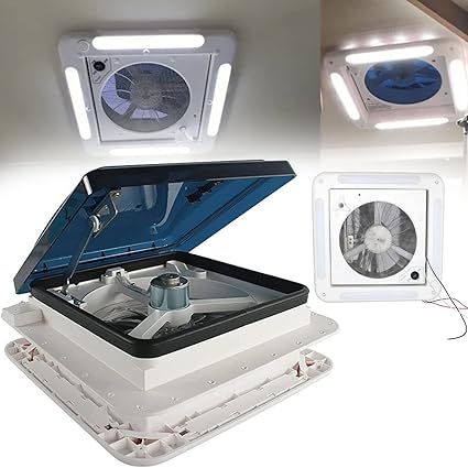 Chensyo Abluftventilator Für Wohnwagen - 12V Mit LED-Licht, 28x28 Cm, Manuell
