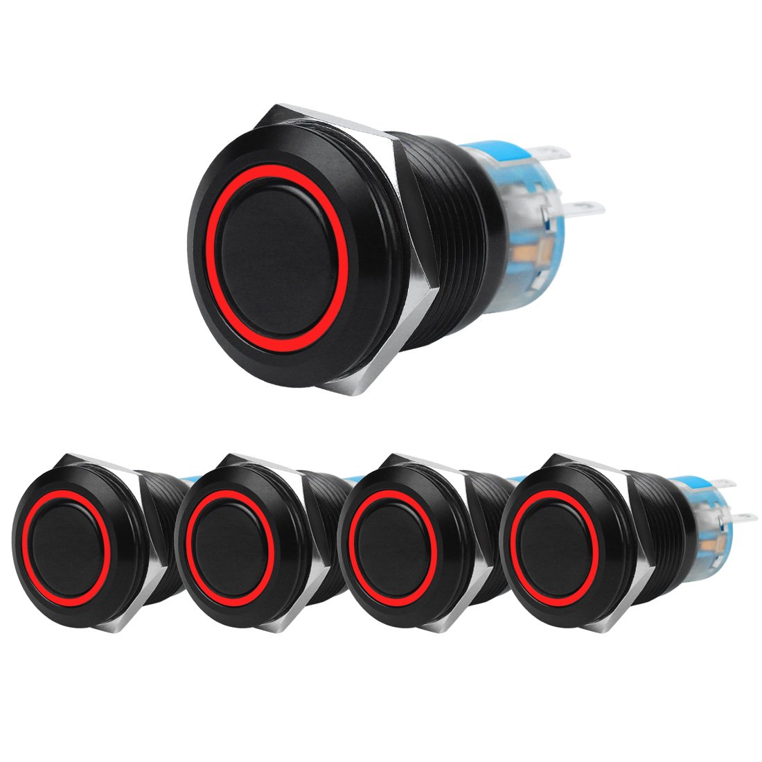 Larcele Druckschalter 19mm Mit LED - 12V Wasserdicht IP65, 5 Stück Set