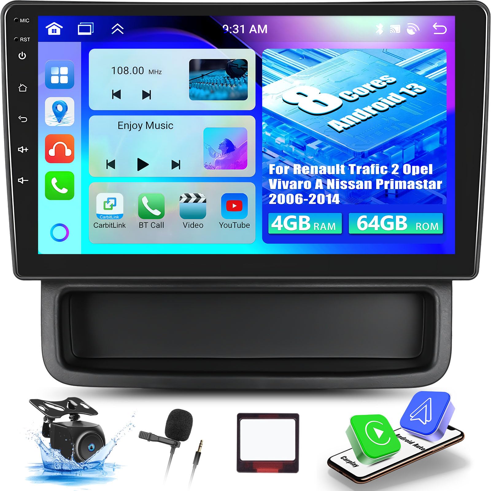Mega Upgrade für deinen Renault Trafic! Dieses Android 13 Radio mit 10.1 Zoll Display ist der absolute Hammer. 2GB RAM + 64GB Speicher - da läuft alles flüssig. Wireless Apple CarPlay und Android Auto sind dabei - einfach verbinden und loslegen. Das 1024x600 HD Display zeigt alles super scharf. Integriertes WLAN und GPS - du kannst Google Maps nutzen oder andere Apps aus dem Play Store laden. Bluetooth für Freisprechen und Musik, FM Radio natürlich auch. Und das Beste: Rückfahrkamera ist dabei! Siehst du genau was hinter dir ist. Lenkradsteuerung funktioniert auch. Passend für Trafic 2, Opel Vivaro A und Nissan Primastar von 2006-2014. Alles dabei für einfachen Einbau - einfach Plug & Play. Dein Auto fühlt sich an wie ein neues! Vergiss alte Radios - das hier ist die Zukunft.