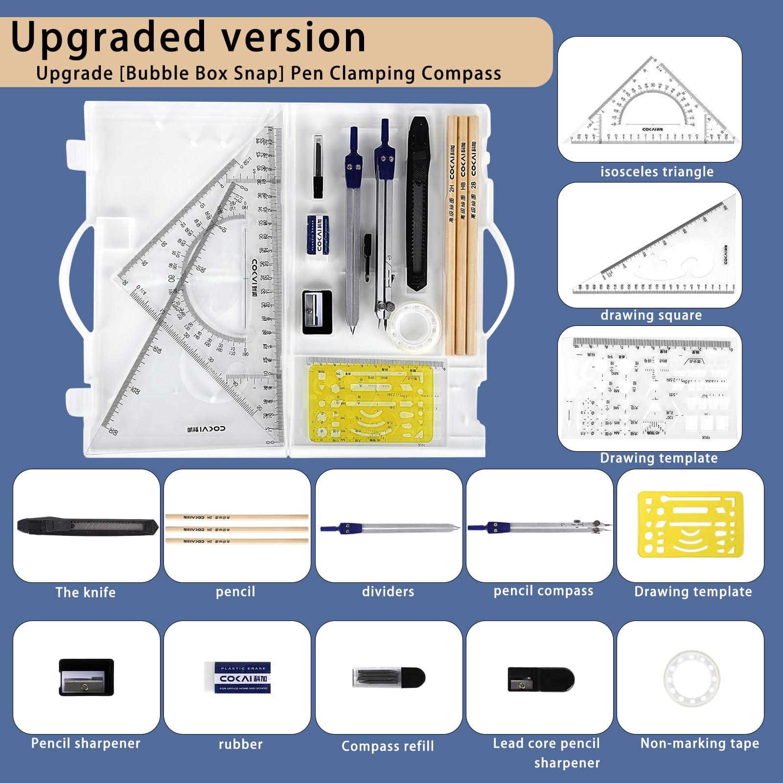 13-teiliges Geometrie Set Mit Zirkel - Mathematik Zeichenwerkzeuge Für Schüler