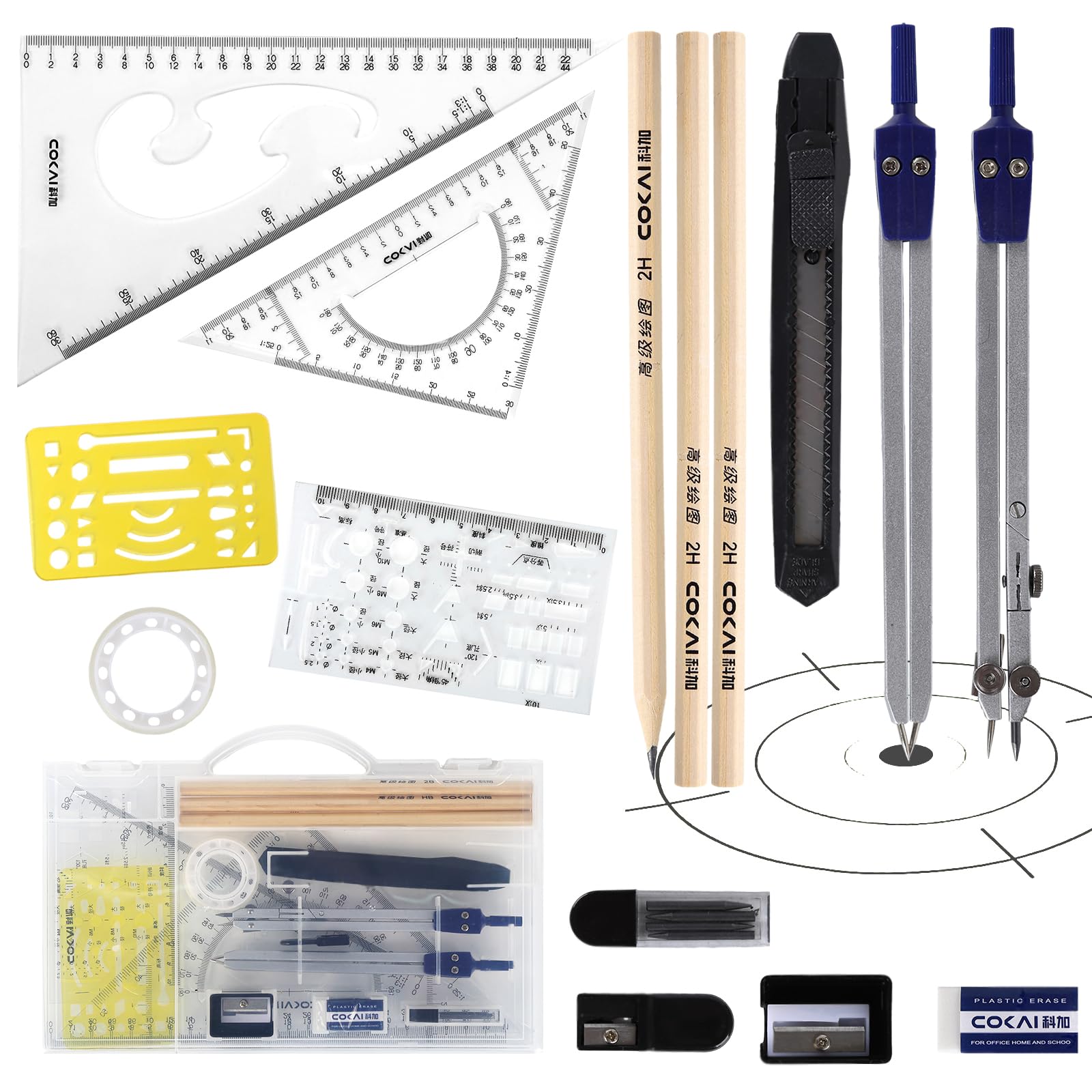 Für alle Mathe-Fans und Künstler: Dieses 13-teilige Geometrie-Set hat alles, was du brauchst! Enthält Zirkel, Winkelmesser, Lineale und mehr - perfekt für Schule, Studium oder Hobby.\n\nDie Zirkel sind aus robusten Materialien gefertigt und zeichnen Kreise von 0-20 cm Durchmesser. Mit ausziehbarer Verlängerung für noch größere Kreise. Super präzise Skalen für genaues Arbeiten.\n\nAlles sicher verstaut in einem praktischen Aufbewahrungskoffer. Leicht und tragbar - ideal für unterwegs. Ob im Mathe-Unterricht, beim technischen Zeichnen oder für Architektur-Skizzen.\n\nDie Werkzeuge liegen gut in der Hand und sind einfach zu bedienen. Aus Aluminiumlegierungen und Kunststoffen - langlebig und stabil. Gewicht: 220g.\n\nPerfekt als Geschenk für Schüler, Studenten oder Kreative. Mit diesem Set macht Geometrie richtig Spaß und die Ergebnisse werden perfekt!