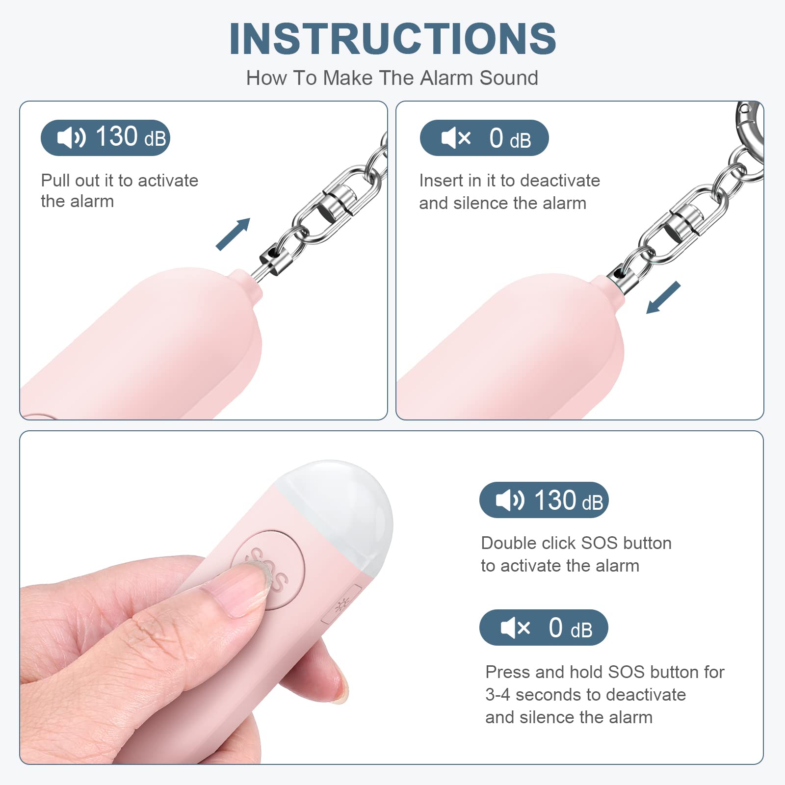Persönlicher Alarm 130dB - Taschenalarm Mit LED Für Selbstverteidigung
