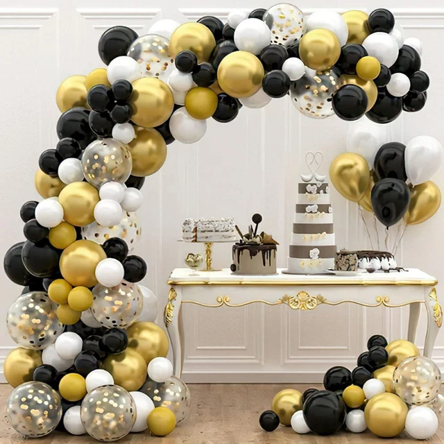 Schwarz Gold Luftballons Set 133-teilig - Girlande & Konfetti Ballons