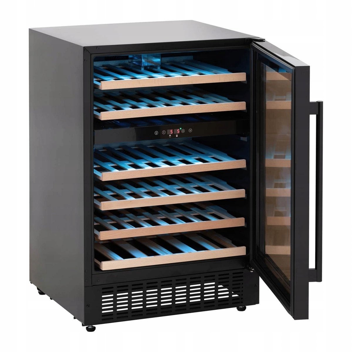 Royal Catering Weinkühlschrank 135 Liter - 6 Einlegeböden, LED Display, Schwarz/Silber