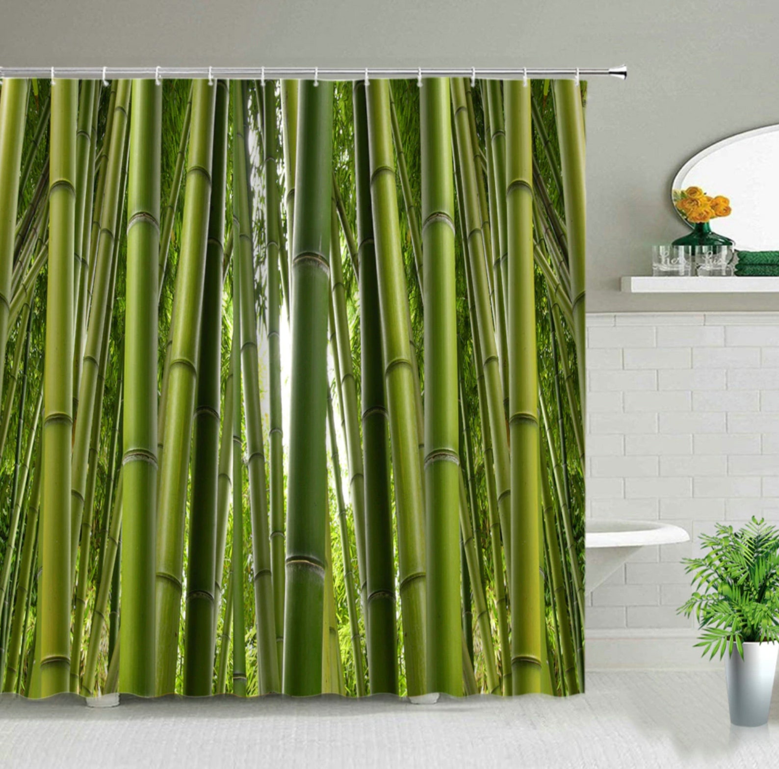 Bring natürlichen Style in dein Badezimmer! Dieser Bambus-Duschvorhang in 135x190cm sieht nicht nur super aus, sondern ist auch praktisch. Aus hochwertigem Polyester gefertigt, ist er wasserabweisend und hält die Spritzer in der Dusche. Der HD-Druck sorgt für lebendige Farben und ein kristallklares Bild. Mit den 12 mitgelieferten Kunststoffhaken ist die Montage ein Kinderspiel - einfach auf die Duschstange hängen und fertig! Der Vorhang trocknet schnell und ist maschinenwaschbar (kalt, schonend). Perfekt als Raumteiler, Türvorhang oder sogar als Fotohintergrund. Schützt deine Privatsphäre, lässt aber noch genug Licht durch. Ein tolles Geschenk für Einzug, Geburtstag oder einfach so!
