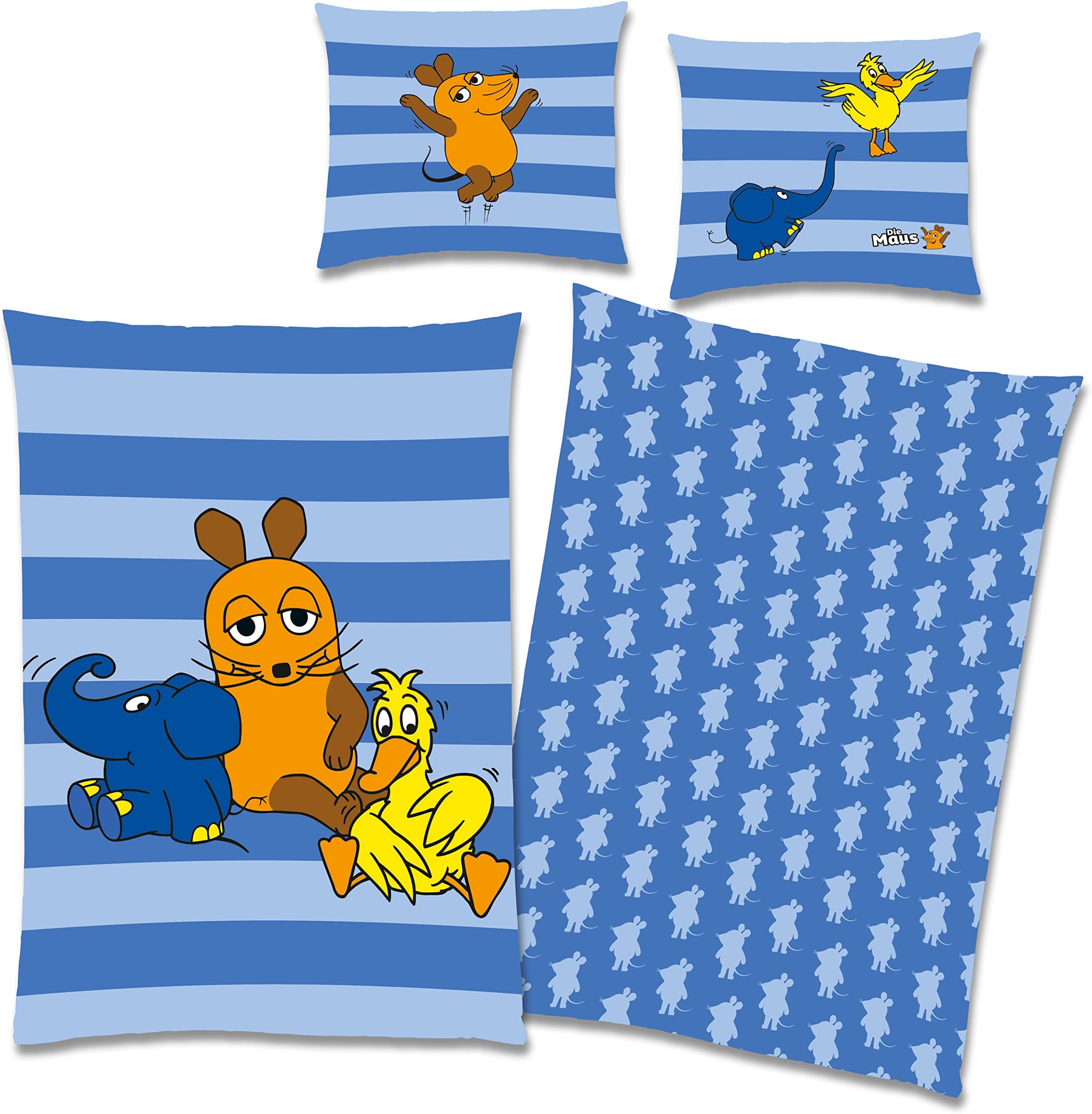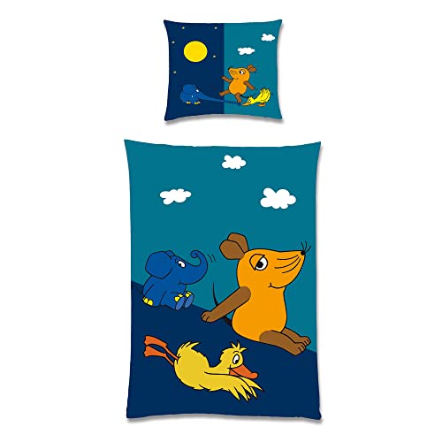 Sendung Mit Der Maus Bettwäsche Kinder 135x200 + 80x80 Cm | 100% Baumwolle Flanell Mit Maus, Ente & Elefant