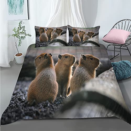 Homewish Capybara Bettwäsche 135x200 - Kawaii Tier Design Mit Erdbeeren Für Kinderzimmer