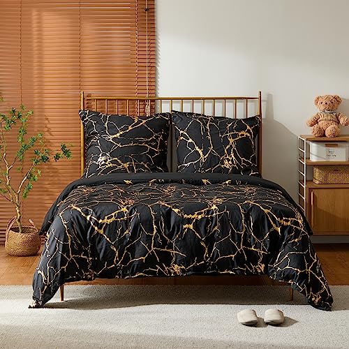 Bettwäsche-Set 135x200cm Schwarz Gold Marmor - Mikrofaser 2-tlg
