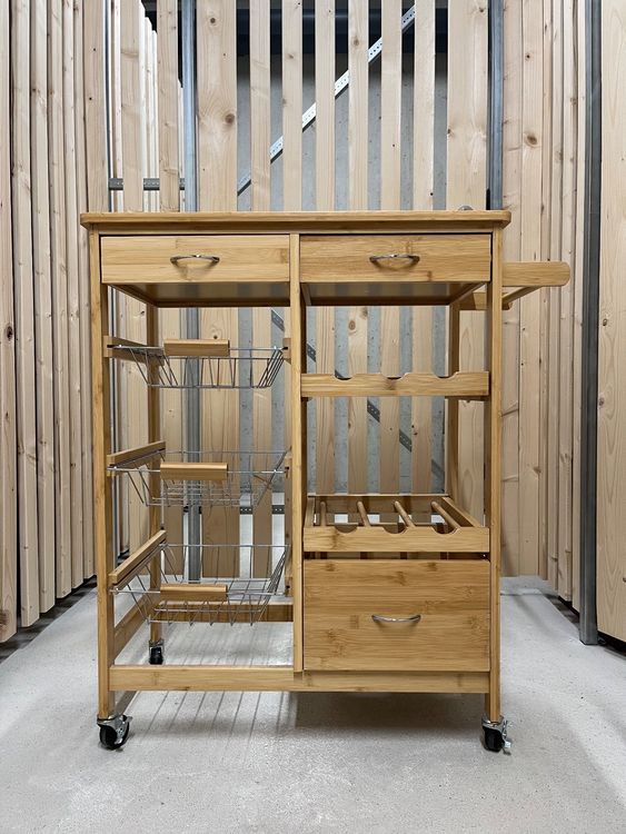 Dieser Zeller Küchenrollwagen ist der praktische Helfer für deine Küche! Mit 36x36x76cm kompakt aber geräumig. In weiß mit stylischem Bamboo-Dekor passt er zu jedem Einrichtungsstil. Eine ausziehbare Schublade für Besteck oder Kleinigkeiten. Zwei Drahtkörbe für Geschirr oder Vorräte. Ein Flaschenboden für bis zu 3 Flaschen. Mit Rollen leicht zu bewegen - perfekt als Servierwagen oder zusätzlicher Stauraum. Einfache Montage - schnell aufgebaut und einsatzbereit. Ideal für Küche, Wohnzimmer oder Balkon. Hol dir mehr Ordnung und Flexibilität - mit diesem vielseitigen Küchenrollwagen!
