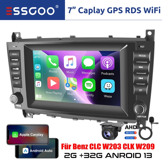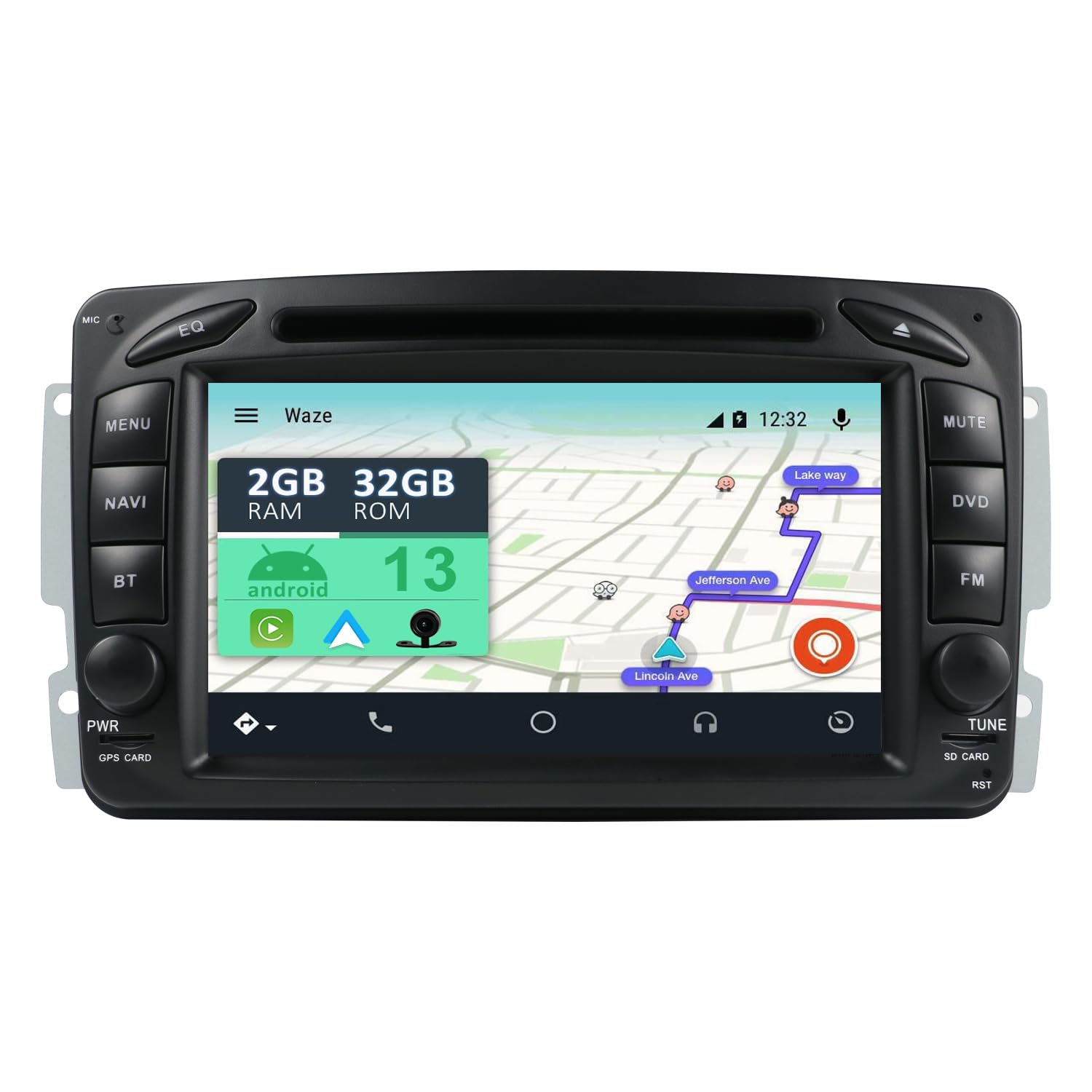 Upgrade dein Mercedes-Fahrzeug mit dem YUNTX Android 14 Autoradio! Der 7-Zoll-IPS-Touchscreen (1280 × 600) mit 2,5D-Glas ist nicht nur groß und klar, sondern auch super modern. Integriertes Wireless CarPlay und Android Auto sorgen für kabellose Verbindung zu deinem Smartphone – Navigation, Musik, Anrufe und Nachrichten direkt auf dem Display. Mit 2 GB RAM und 32 GB ROM läuft alles flüssig. DAB+ Digitalradio (Adapter optional), Bluetooth 5.0, Lenkradsteuerung und Rückfahrkamera-Unterstützung sind inklusive. Passt perfekt zu Mercedes W163, W203, W209, W168, W210 und anderen Modellen (1998-2006). Mach deine Fahrten smarter, unterhaltsamer und sicherer – mit dem YUNTX Android Radio!