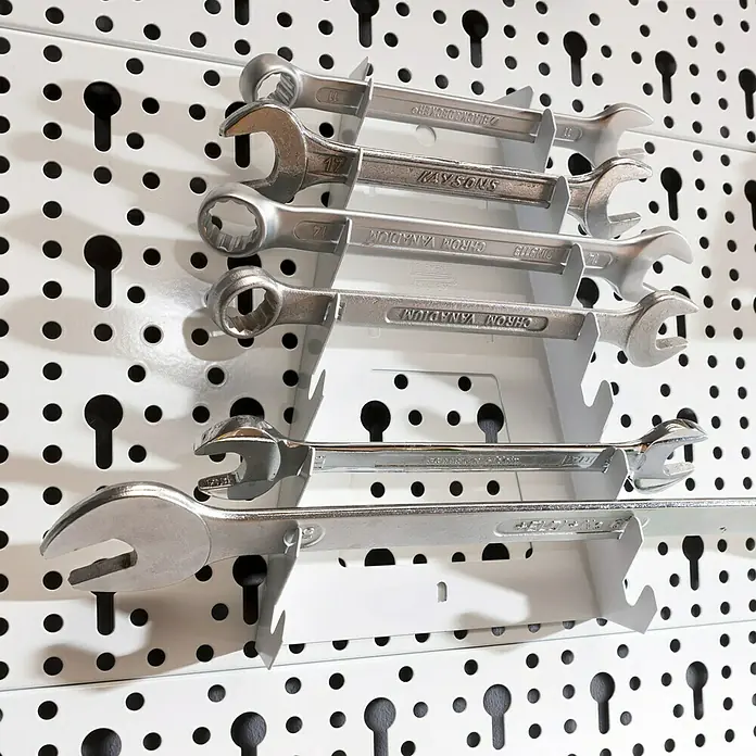 Schluss mit dem Chaos in der Werkstatt! Diese praktische Schraubendreher-Halterung von HASLED bringt Ordnung in deine Werkzeuge. Mit 14 festen Plätzen für Schraubendreher, Zangen oder Schraubenschlüssel. Aus robustem Stahlblech gefertigt, 40cm lang und in schwarz lackiert. Einfache Wandmontage inklusive - Schrauben und Dübel sind schon dabei. Spart wertvollen Platz auf der Werkbank und du hast alle Werkzeuge immer griffbereit. Perfekt für Garage, Hobbyraum oder Werkstatt. Nie wieder suchen - jedes Werkzeug hat seinen festen Platz. Die Halterung ist stabil und hält auch schwerere Werkzeuge sicher. Endlich Ordnung und mehr Platz zum Arbeiten! Einfach montieren und sofort besser arbeiten können.