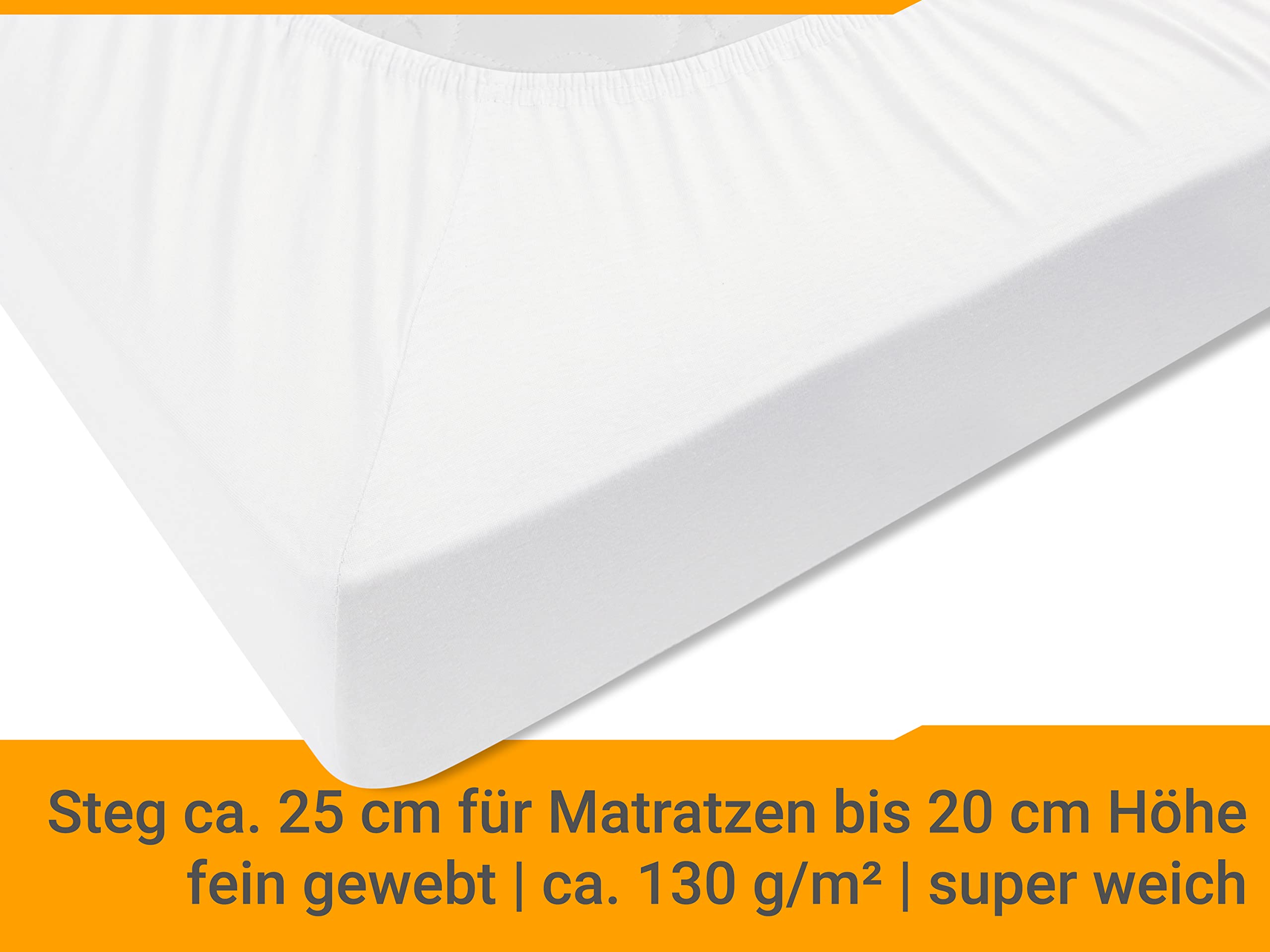 Perfekter Schlafkomfort garantiert! Dieses Spannbettlaken aus 100% Jersey-Baumwolle ist ein Traum an Weichheit. In 6 Größen von ca. 140x200cm erhältlich - passt für die meisten Matratzen. Mit tiefen Ecktaschen für optimalen Halt ohne Verrutschen. Der doppelt vernähte Rundumgummi fransst nicht aus, auch nach häufigem Waschen nicht. Atmungsaktiv und feuchtigkeitsregulierend für ein angenehmes Schlafklima. In 22 trendigen Farben - von dezent bis kräftig. Schadstoffgeprüft nach Öko-Tex Standard 100 - hautfreundlich und unbedenklich. Pflegeleicht: Waschbar bis 60°C, trocknergeeignet und bügelfest. Pillingarm und farbecht - behält auch nach vielen Waschgängen seine Form und Farbe. Mach dein Bett zur Wohlfühloase mit diesem hochwertigen Spannbettlaken. Erholsamer Schlaf war noch nie so bequem!