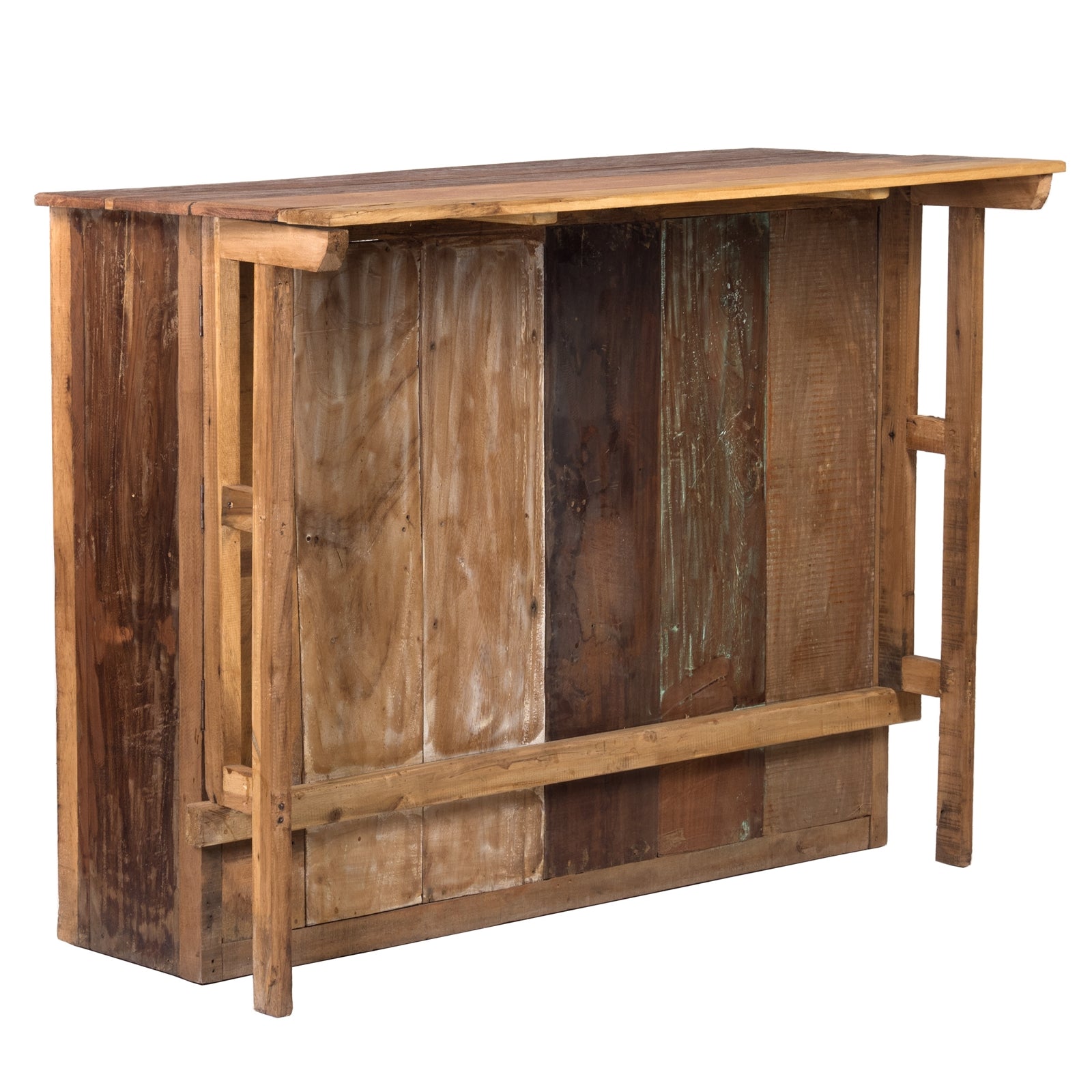 Wow, diese rustikale ARUBA Hausbar ist einfach ein Traum! Mit 140cm Breite und 110cm Höhe wird sie zum absoluten Highlight in deinem Wohnbereich. Das Besondere: Jede Bar ist ein Unikat aus Recyclingholz mit einzigartiger Maserung - keine sieht aus wie die andere! Im Lieferumfang sind sogar zwei passende Holzhocker dabei. In der Bar findest du Platz für bis zu 18 Weinflaschen plus Gläser und Zubehör - alles hat seinen festen Platz. Die Theke lässt sich bei Bedarf sogar ausklappen für mehr Stellfläche. Perfekt für Weinfreunde, aber auch als stylische Hausbar für Partys oder gemütliche Abende. Achtung: Da alles Handarbeit ist, gibt es kleine Unebenheiten und Imperfektionen - das macht aber gerade den Charm aus! Lieferung erfolgt per Spedition bis Bordsteinkante - also besser eine Telefonnummer angeben. Damit holst du dir ein richtig besonderes Möbelstück ins Haus!