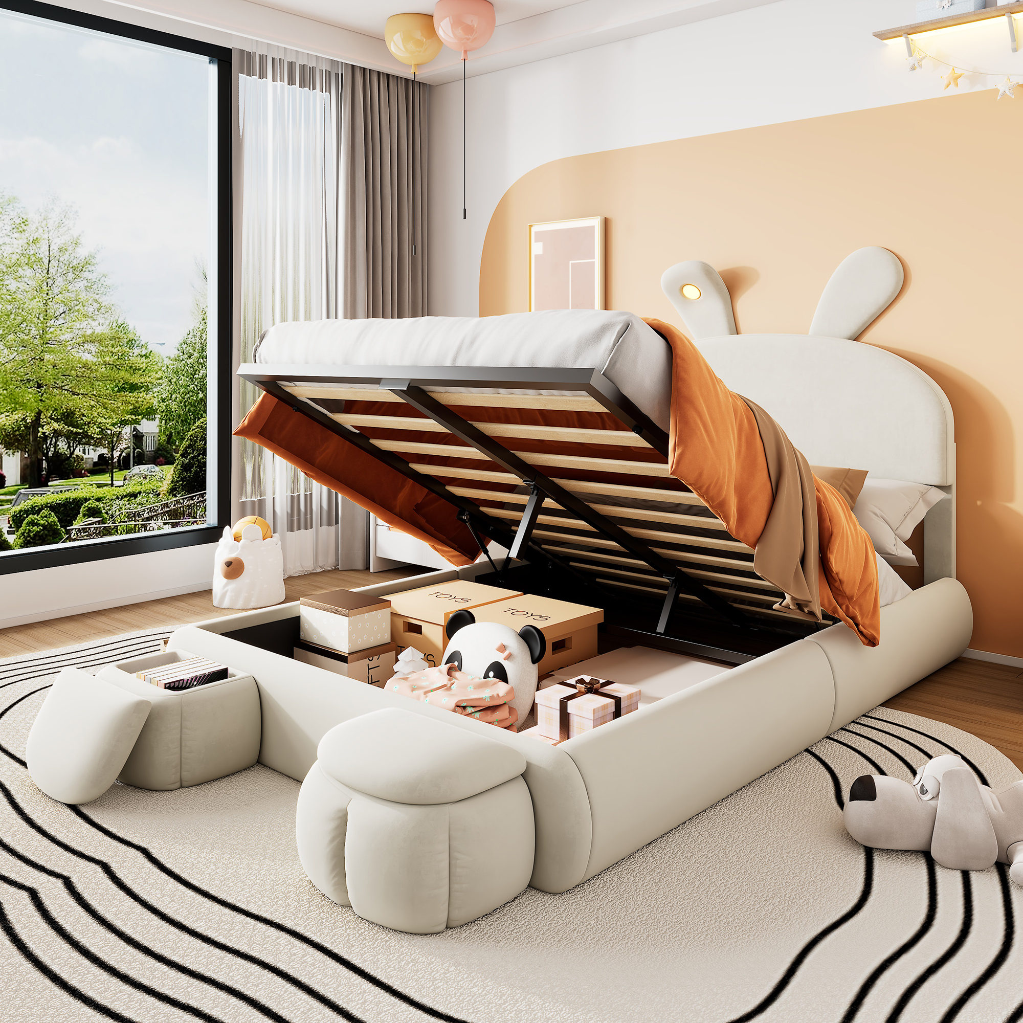 Merax Polsterbett 140x200 Cm - Mit USB-Ladefunktion, Leselicht & Stauraum