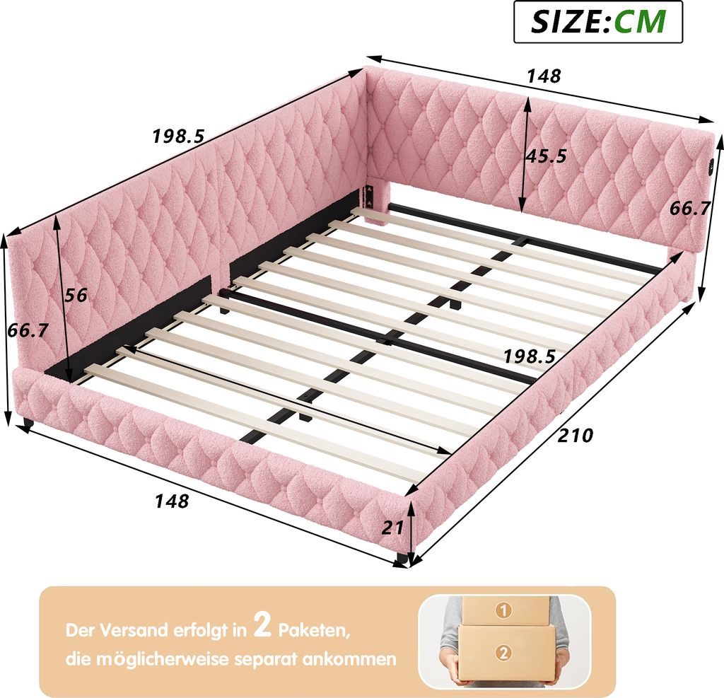 Suchst du ein praktisches und gemütliches Bett für dein Kind? Das Kelodan Daybett ist die perfekte Wahl! Mit 140x200 cm bietet es genug Platz zum Schlafen und Spielen. Das weiche Vliesimitat fühlt sich an wie Wolken - super kuschelig und hautfreundlich. Das coole Feature: Es hat ein ausziehbares Beistellbett, praktisch für Übernachtungsgäste oder Geschwister. Noch besser: Eingebaute USB und Type-C Anschlüsse zum Laden von Tablets und Handys - nie mehr Steckdosensuche! Die integrierte Nachttischlampe mit warmem Licht vertreibt die Angst vor der Dunkelheit. Perfekt für Gute-Nacht-Geschichten. Das stylische geometrische Design macht jedes Kinderzimmer gemütlich. Inklusive Lattenrost - Matratze separat erhältlich. Einfach aufzubauen, stabil und langlebig. Dein Kind wird dieses gemütliche Nest lieben! Verfügbar in Weiß und Rosa. Mach das Kinderzimmer zum Lieblingsplatz!