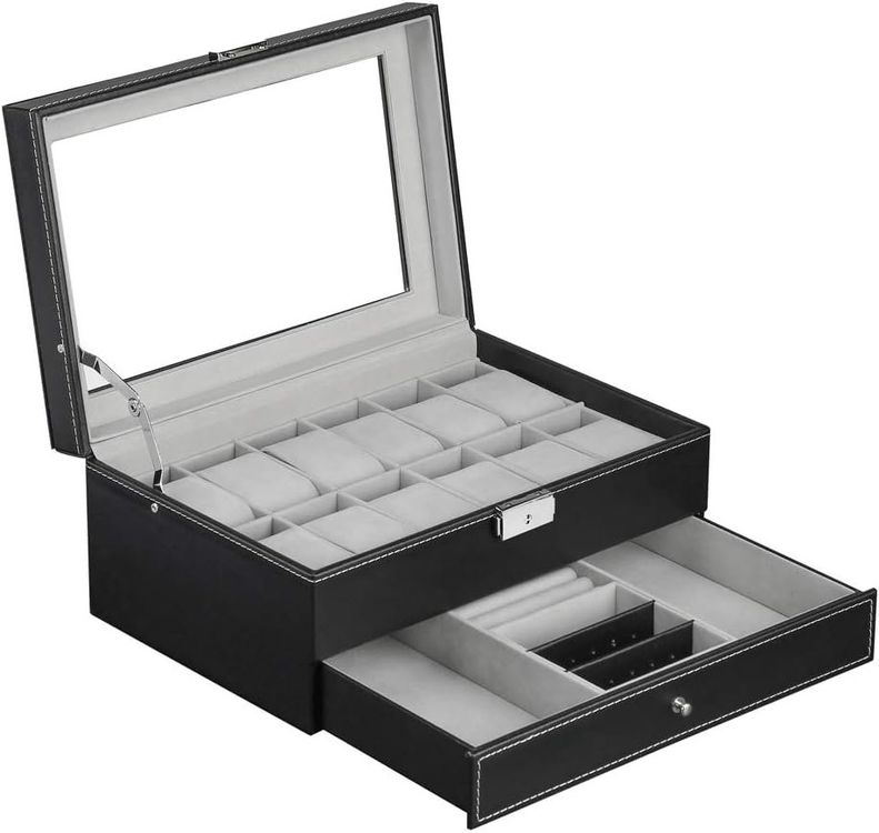 Endlich Ordnung f\u00fcr deine Uhrensammlung! Diese Uhrenbox mit 15 F\u00e4chern bietet Platz f\u00fcr alle deine Zeitmesser - ob mechanische Uhren, Quarzuhren oder Smartwatches. Jedes Fach mit weichem Samtfutter und elastischen Halterungen - sch\u00fctzt vor Kratzern und St\u00f6\u00dfen. Stabiler EVA-Schaumstoff polstert jede Uhr sicher. Mit Reissverschluss und Metallverschluss - alles bleibt sicher verstaut. Aus Oxford-Stoff - langlebig und stylisch. Perfekt f\u00fcr zu Hause oder unterwegs. Sch\u00fctzt vor Staub und Besch\u00e4digungen. Ideal f\u00fcr Sammler oder alle, die ihre Uhren lieben. Macht auch als Geschenkbox eine gute Figur. Einfach Uhren reinsetzen, Reissverschluss zu - fertig! Deine Uhren sind sicher verwahrt und immer griffbereit. Einfach bestellen und deine Uhrensammlung professionell organisieren!