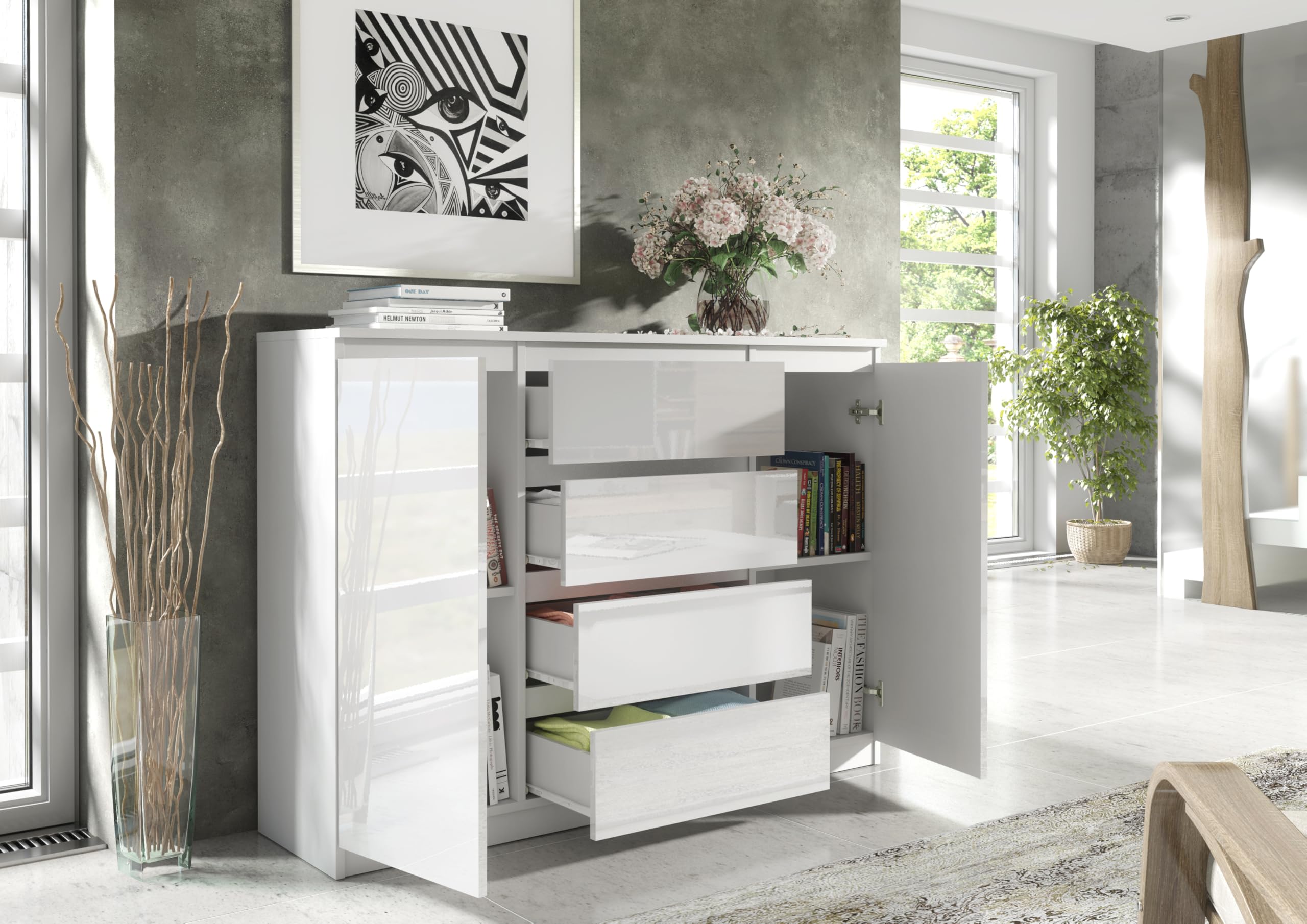 HAINEW Kommode Sideboard 150cm - 5 Schubladen & 4 Türen Aufbewahrungsschrank Weiß