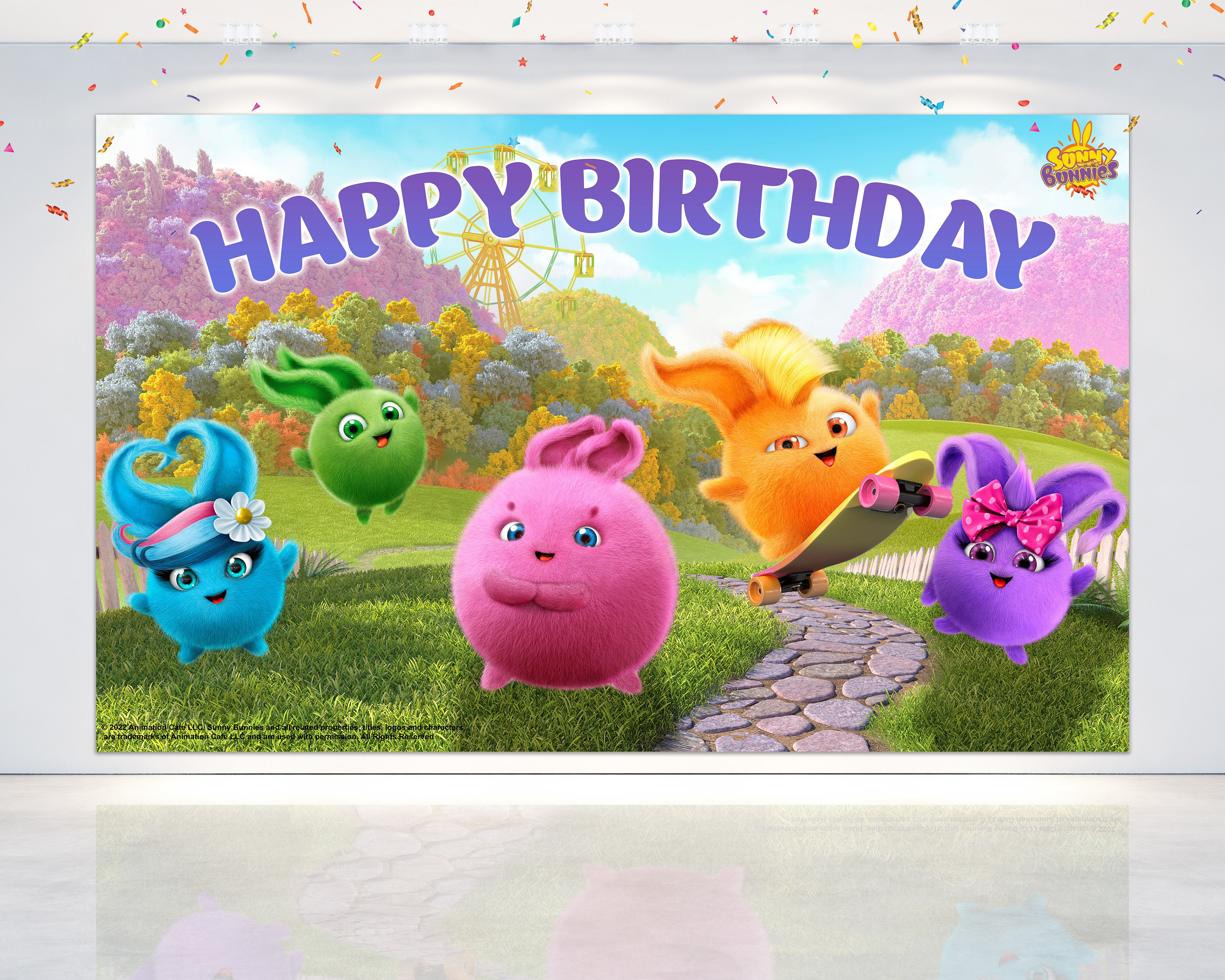 Gelbe Geburtstags Party Hintergrundwand 150x100 Cm - Cartoon Deko Für Kindergeburtstage