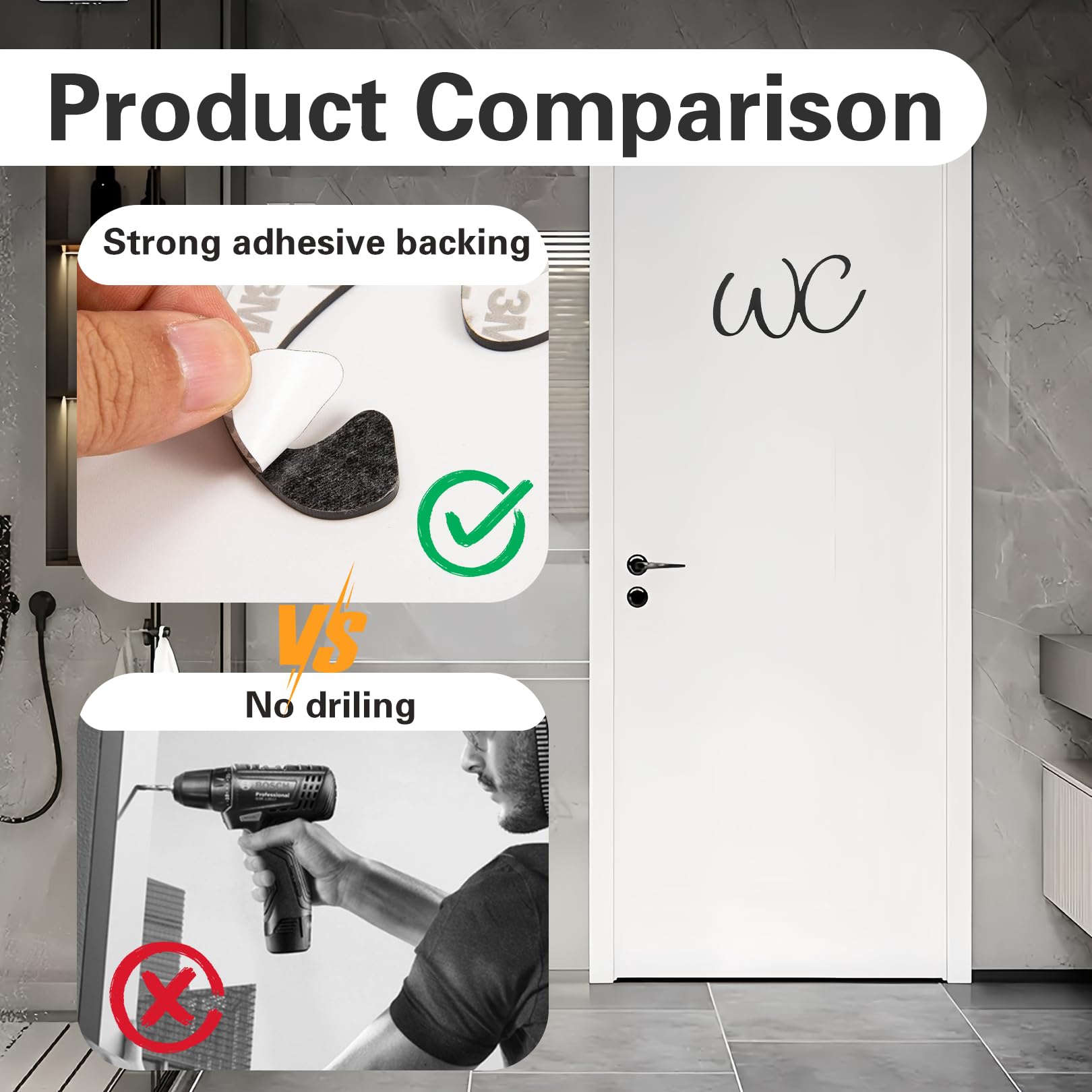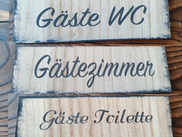 Nie wieder suchende Gäste! Dieses elegante WC-Schild zeigt Deinen Besuchern diskret den Weg zur Toilette. Einfach aufkleben und schon ist die Verwirrung vorbei. \\n\\nProduktdetails: \\n- Maße: 15 x 10 cm \\n- Material: Hochwertiges Acryl \\n- Farbe: Schwarz \\n- Selbstklebend \\n- Für Innen und Außen \\n\\nEinfache Montage: \\n- Kein Bohren erforderlich \\n- Einfach Schutzfolie abziehen \\n- Auf saubere, trockene Oberfläche kleben \\n- Sofort einsatzbereit \\n\\nOberflächen: \\n- Holztüren \\n- Glastüren \\n- Metalltüren \\n- Gefliesten Wänden \\n\\nVorteile: \\n- Kratzfest und langlebig \\n- Lichtbeständig \\n- Leicht zu reinigen \\n- Hygienisch \\n- Diskretes Design \\n\\nEinsatzorte: \\n- Privathaushalte \\n- Restaurants und Cafés \\n- Hotels \\n- Büros und Praxen \\n- Öffentliche Einrichtungen \\n\\nDas schlichte Design passt zu jedem Einrichtungsstil - ob modern oder klassisch. Die gute Lesbarkeit sorgt dafür, dass jeder sofort erkennt, wo es lang geht. \\n\\nEin echter Geheimtipp für alle, die häufig Gäste empfangen oder ein Gewerbe mit Publikumsverkehr betreiben!
