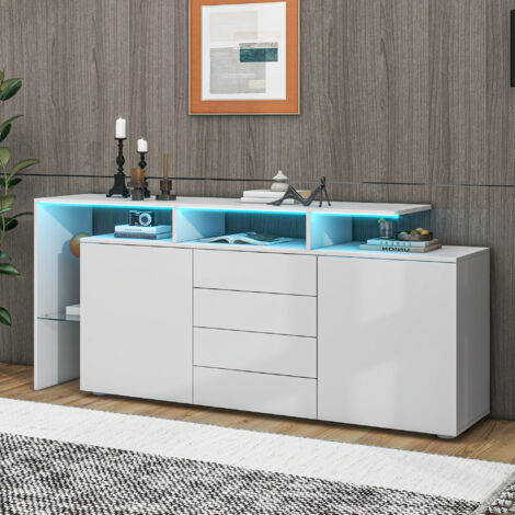 Easexcy 160cm Kommode Mit LED - Modernes Sideboard In Weiß Hochglanz