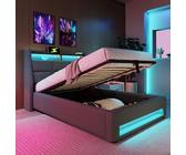 Wow, dieses Henunem Polsterbett ist echt der Hammer! Mit 160x200 cm ist es perfekt für Paare und bietet mega viel Komfort. Das LED-Kopfteil ist nicht nur stylisch, sondern hat auch USB-Anschlüsse zum Laden - super praktisch für abends im Bett. Und hey, keine Sorge, das Bett kommt in zwei Paketen, damit nichts kaputtgeht.\\n\\nWas ich besonders cool finde: Der versteckte Bettfuß lässt das Bett quasi schweben - sieht total modern aus! Dazu gibt's jede Menge Stauraum: Schubladen unter dem Bett und sogar ein cleveres Regal für Handy oder Tablet. Das Lattenrost ist aus massivem Holz und Metall und hält bis zu 300 kg aus.\\n\\nNoch mehr Highlights:\\n• LED-Streifen mit Farbwechsel und Musikmodus\\n• Gasdruckfedern für einfachen Zugang zum Stauraum\\n• Weiche Polsterung für ultimativen Komfort\\n• Einfache Montage in ca. 30 Minuten\\n\\nPerfekt für alle, die modernes Design mit praktischen Funktionen lieben!