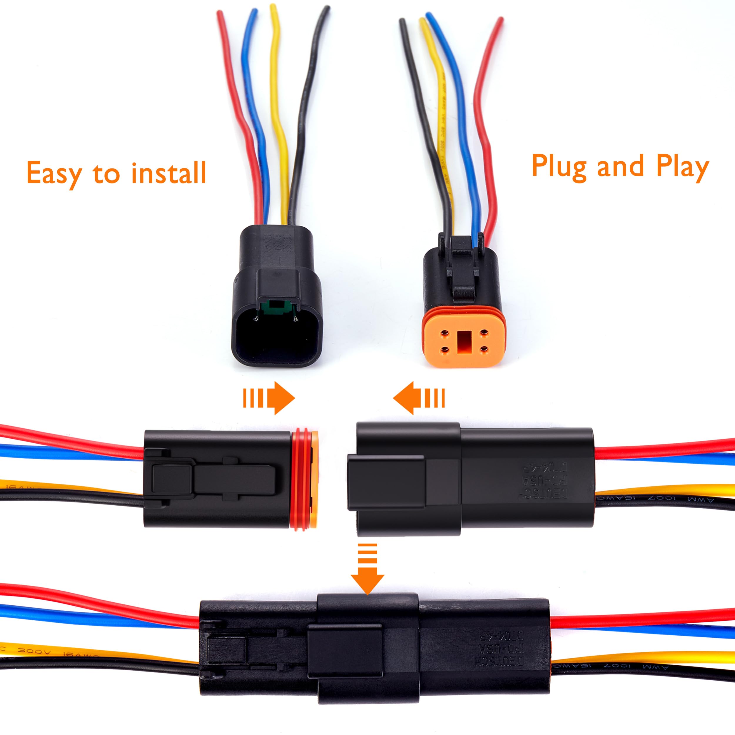 4x DT 4-Pin Steckverbinder Wasserdicht | 16AWG Für Auto, Boot & Motorrad | Mit Klemmen