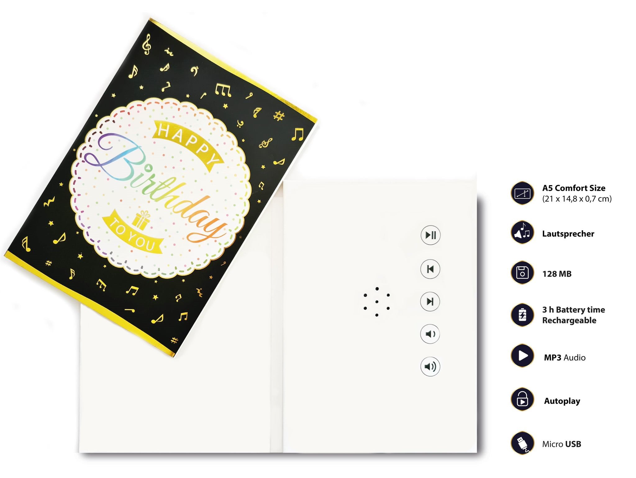 Audiogrußkarte Personalisierbar | 16MB Speicher Für Musik & Sprache | USB-C Wiederaufladbar