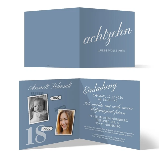 Einfach deine Party-Daten durchgeben und schon erhältst du fertig gedruckte, persönliche Einladungen. Das coole Design passt perfekt zum besonderen Anlass \18. Geburtstag\ und zeigt, dass eine spaßige Feier bevorsteht. Vergiss nur nicht, passende Briefumschläge dazu zu bestellen!