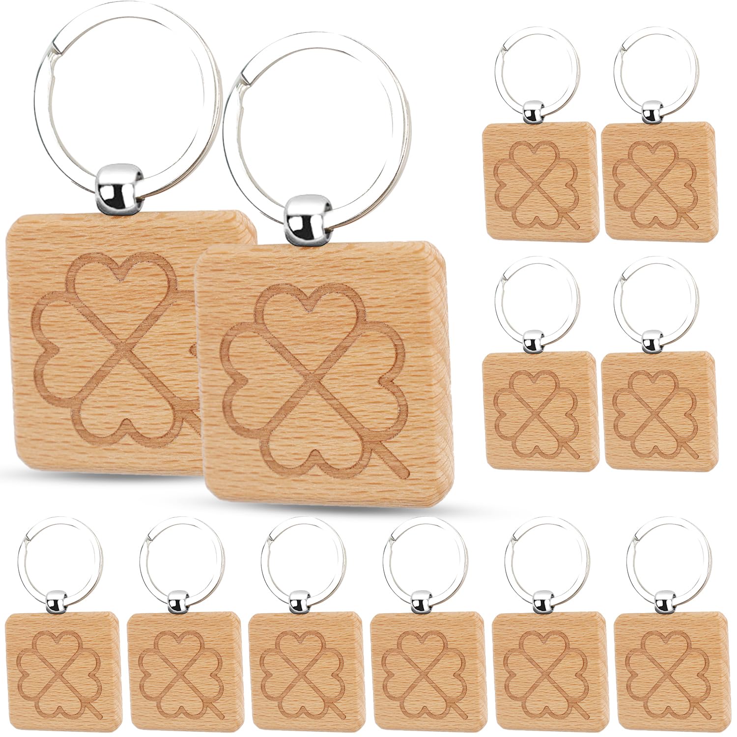 Süße Glücksbringer für alle Lebenslagen! Dieses Set mit 18 Holz-Schlüsselanhängern zeigt niedliche Kleeblatt-Motive und die motivierende Aufschrift 'Du schaffst das'. Hergestellt aus hochwertigem Buchenholz, sind sie leicht, langlebig und haben eine angenehm glatte Oberfläche. Enthalten sind 9 runde und 9 herzförmige Anhänger (je 7,5x4cm). Perfekt als kleine Aufmerksamkeit für Freunde, Familie oder Kollegen - ob als Glücksbringer, Autoschlüssel-Anhänger oder Taschen-Deko. Das vierblättrige Kleeblatt steht für Glück und Freude, die persönliche Botschaft motiviert im Alltag. Einfach an Schlüsselbund, Geldbörse oder Tasche hängen und immer ein Lächeln dabei haben. Toll als Geschenk für Geburtstage, Weihnachten oder einfach so!