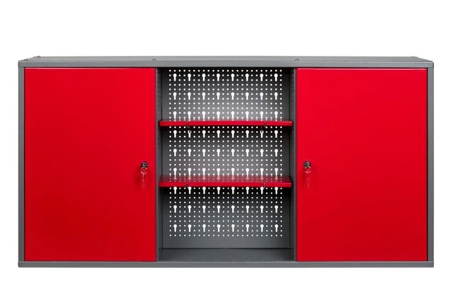 Boah, dieser Werkzeugschrank ist ja mal der absolute Ordnungs-Profi! Mit stolzen 180 cm Höhe und 90x40 cm Grundfläche bietet er Platz für dein ganzes Werkzeug. Die 3 herausnehmbaren Regale tragen je 40 kg - da kannst du auch schwere Teile sicher verstauen. Das integrierte Steckbrett ist perfekt für Schraubenschlüssel, Zangen und Co. Noch mehr Stauraum bieten die 2 Einbauregale für Lagerbehälter. Aus robustem Stahl mit kratzfester Beschichtung - der hält was aus! Das 3-Punkt-Verriegelungssystem mit 2 Schlüsseln schützt dein Werkzeug sicher. Einfach zusammenzubauen und mit den Kunststofffüßen kratzt nichts den Boden. Wichtig: unbedingt an der Wand sichern! Sieht übrigens auch richtig cool aus mit dem industriellen Design in Schwarz-Rot.