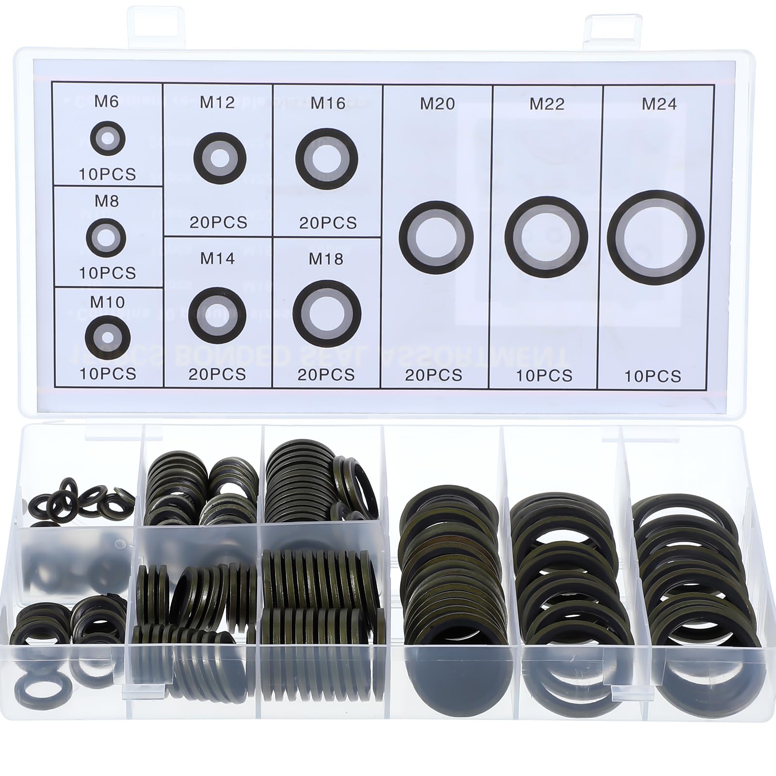 Majatou Ölablassschrauben Dichtungsset 180-teilig - M6 Bis M24 Dichtungen Für Motorrad & Auto