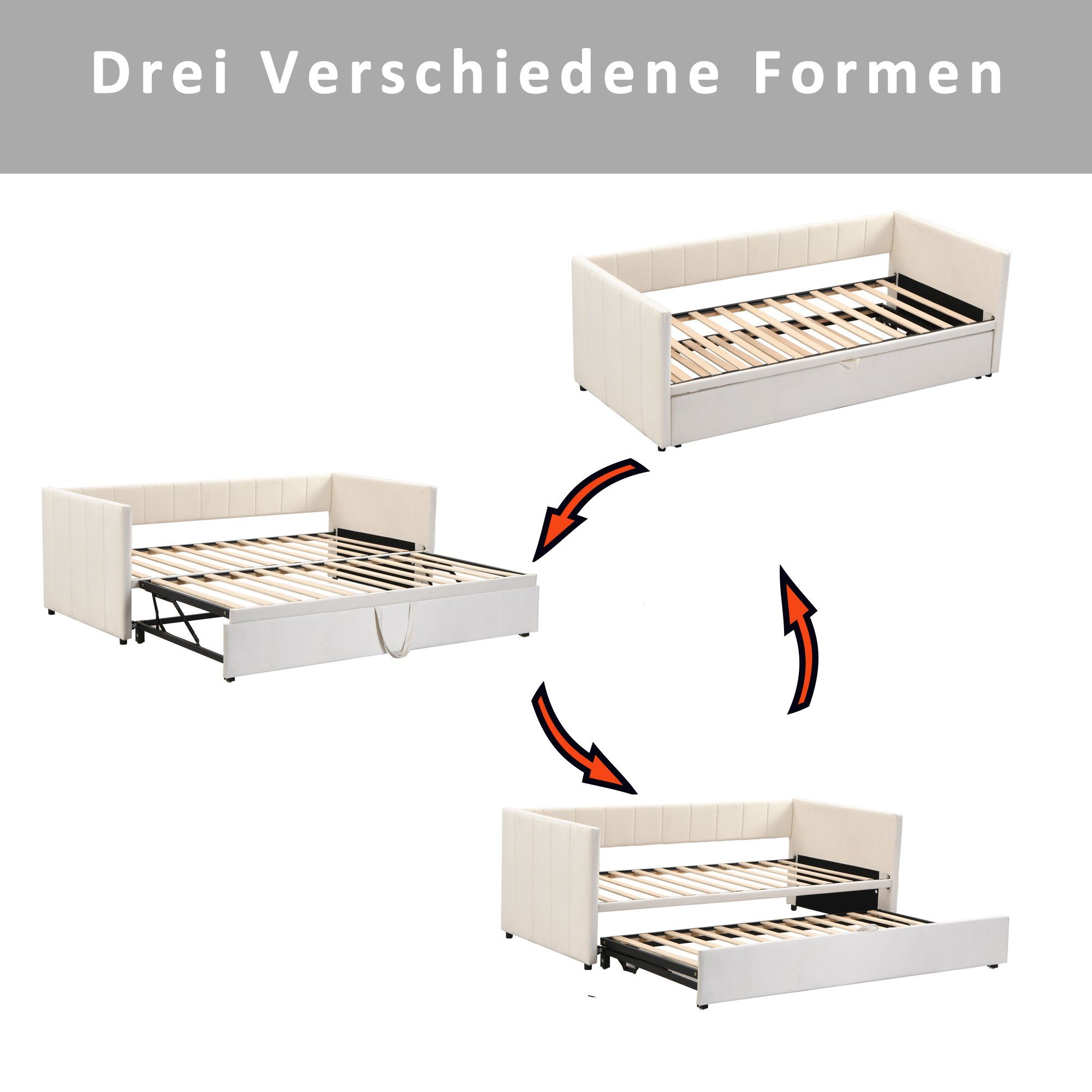 WSOFZMO Schlafcouch Ausziehbar 180x200 Cm - Tagesbett Mit Flanellbezug Creme