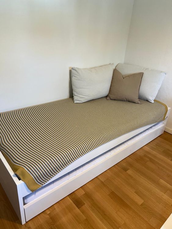 Perfekte Platzersparnis! Diese Schlafcouch verwandelt sich im Handumdrehen von einem 90x200 cm Sofa in ein 180x200 cm Bett. Mit dickem Elastikschwamm und weichem Flanellbezug - super bequem! Der stabile Holz-Metall-Rahmen trägt bis zu 370 kg. Praktische Seitentaschen für Handy, Bücher & Co. Einfach selbst zu montieren. Ideal für kleine Wohnungen, Gästezimmer oder Büros. Creme-Farbe passt zu jedem Einrichtungsstil. Hol dir dieses vielseitige Möbelstück - Sofa by day, Bett by night!