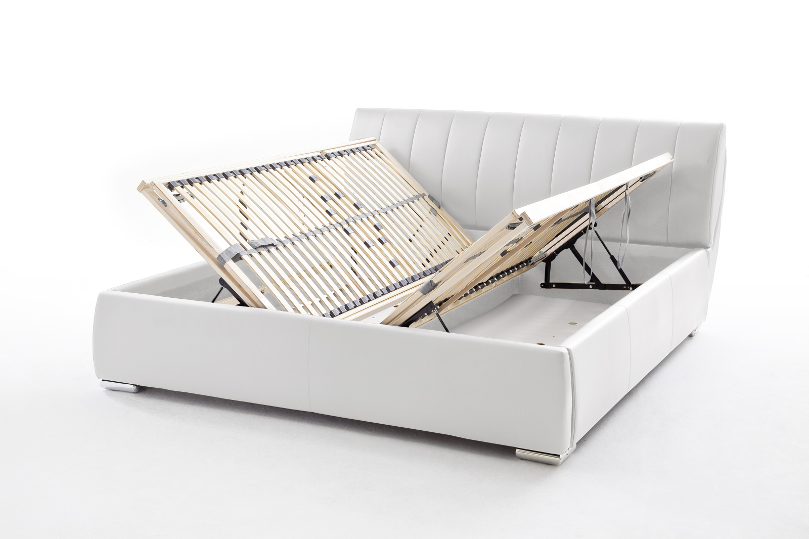 Emmtore Polsterbett 180x200 Weiß - Höhenverstellbares Kunstlederbett Mit Kopfteil