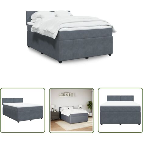 VidaXL Boxspringbett 180x200cm Dunkelgrau - Mit Matratze & Auflage Samt