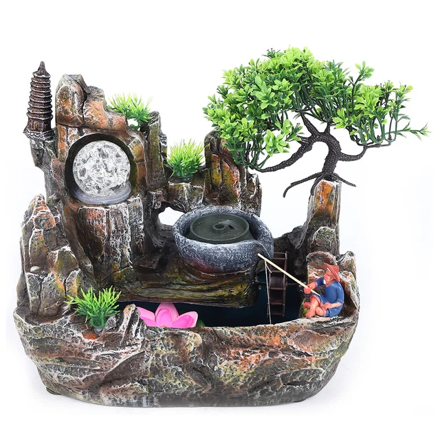 Wow, dieser Zimmerbrunnen bringt richtig Entspannung ins Haus! Mit 18x15x30 cm perfekt für den Tisch im Wohnzimmer, Schlafzimmer oder Büro. Das beruhigende Plätschern des Wassers hilft super beim Abschalten nach nem stressigen Tag. Und die LED-Beleuchtung wechselt die Farben und schafft ne traumhafte Atmosphäre am Abend. Mit simulierten Pflanzen, nem Wasserrad und Felsen fühlst du dich wie in der Natur. Die Pumpe lässt sich easy einstellen und läuft mit 220-240V. Einfach aufstellen, Wasser rein und Stecker drauf - schon plätschert es los. Nur 1,4 kg schwer also easy zu transportieren. Perfekt für alle die mehr Ruhe und natürliche Stimmung in ihren Alltag bringen wollen. Einfach hinstellen und entspannen!