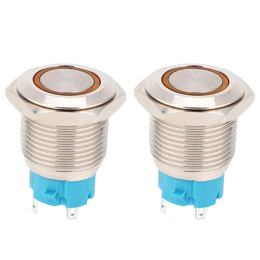 YACSEJAO 2 Stück Drucktastenschalter 19mm | 3A 24V IP66 Wasserdicht - Edelstahl