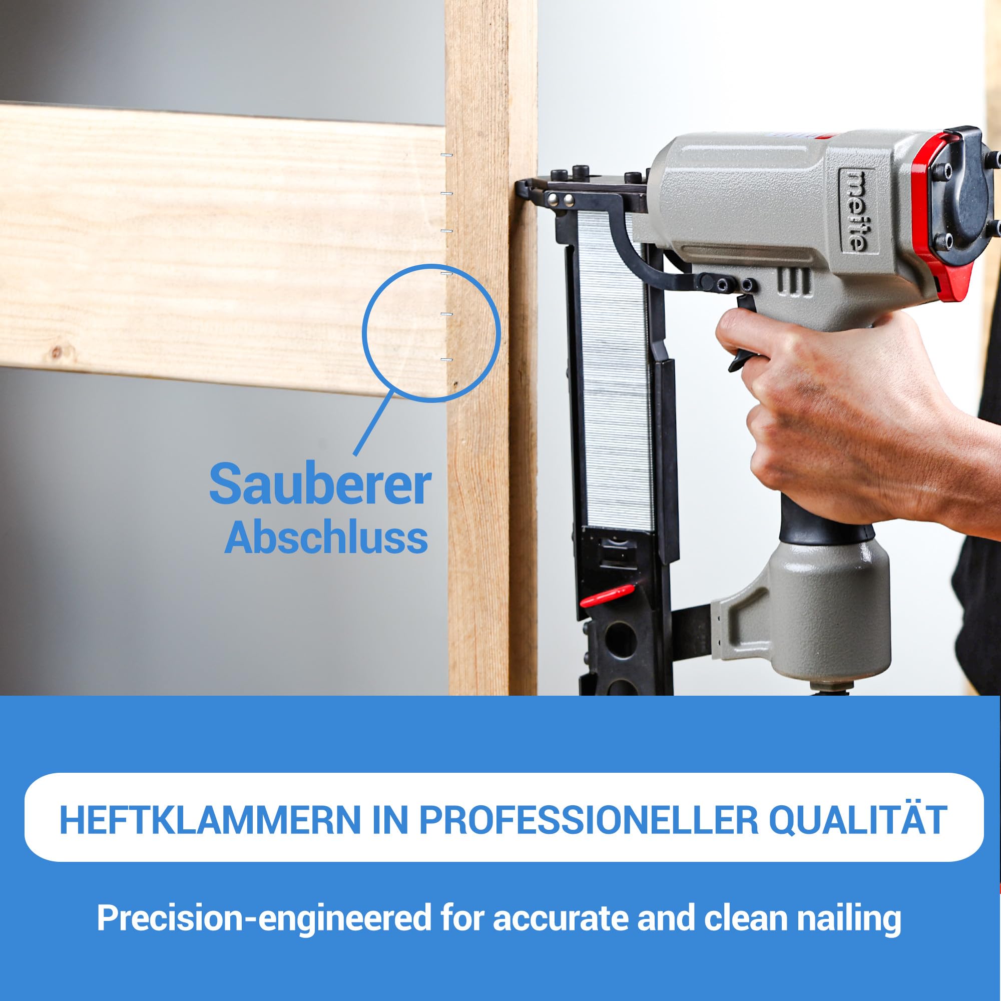 Mit 18 Gauge und Typ 90 sind die perfekt für anspruchsvolle Arbeiten. Passen für die meisten Druckluft-Tacker, manuelle Tacker und Akku-Geräte - aber vor dem Kauf kurz checken, ob's mit eurem Gerät kompatibel ist!