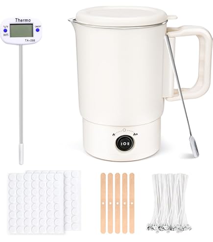 DIY Kerzen selber machen war noch nie so einfach! Dieser 150W Wachsschmelzer schmilzt Wachs super schnell und gleichmäßig. Mit digitaler LED-Anzeige und Temperaturregelung bis 120°C - du hast alles unter Kontrolle. Der 1L Topf ist perfekt für Kerzen, Aromatherapie oder Seifenherstellung. Im Set dabei: 100 Dochte, Aufkleber, Holzständer und Rührlöffel. Sicherheitsfeatures wie Anti-Scald Griff und Lüftungslöcher. Ob Anfänger oder Profi - damit gelingen deine Kreationen garantiert. Entspannendes Hobby mit schönen Ergebnissen für dich oder als Geschenk!