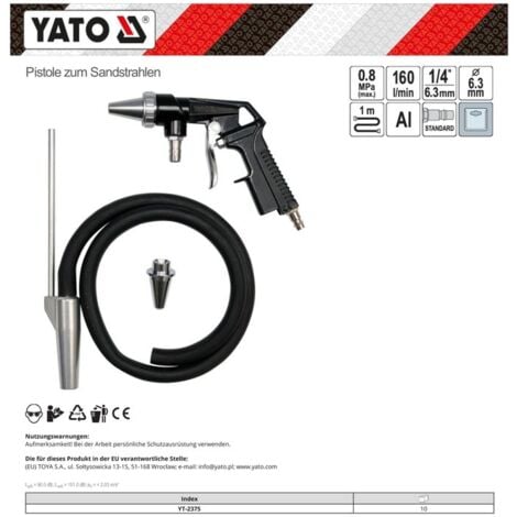 Ob zum Entrosten von Werkzeugen, Matieren von Glas oder Reinigen von Maschinenteilen - dieses Teil ist vielfältig einsetzbar. Der Schnellverschluss macht das Nachfüllen zum Kinderspiel. Einfach an den Kompressor anschließen und schon kann's losgehen mit dem Strahlspaß!